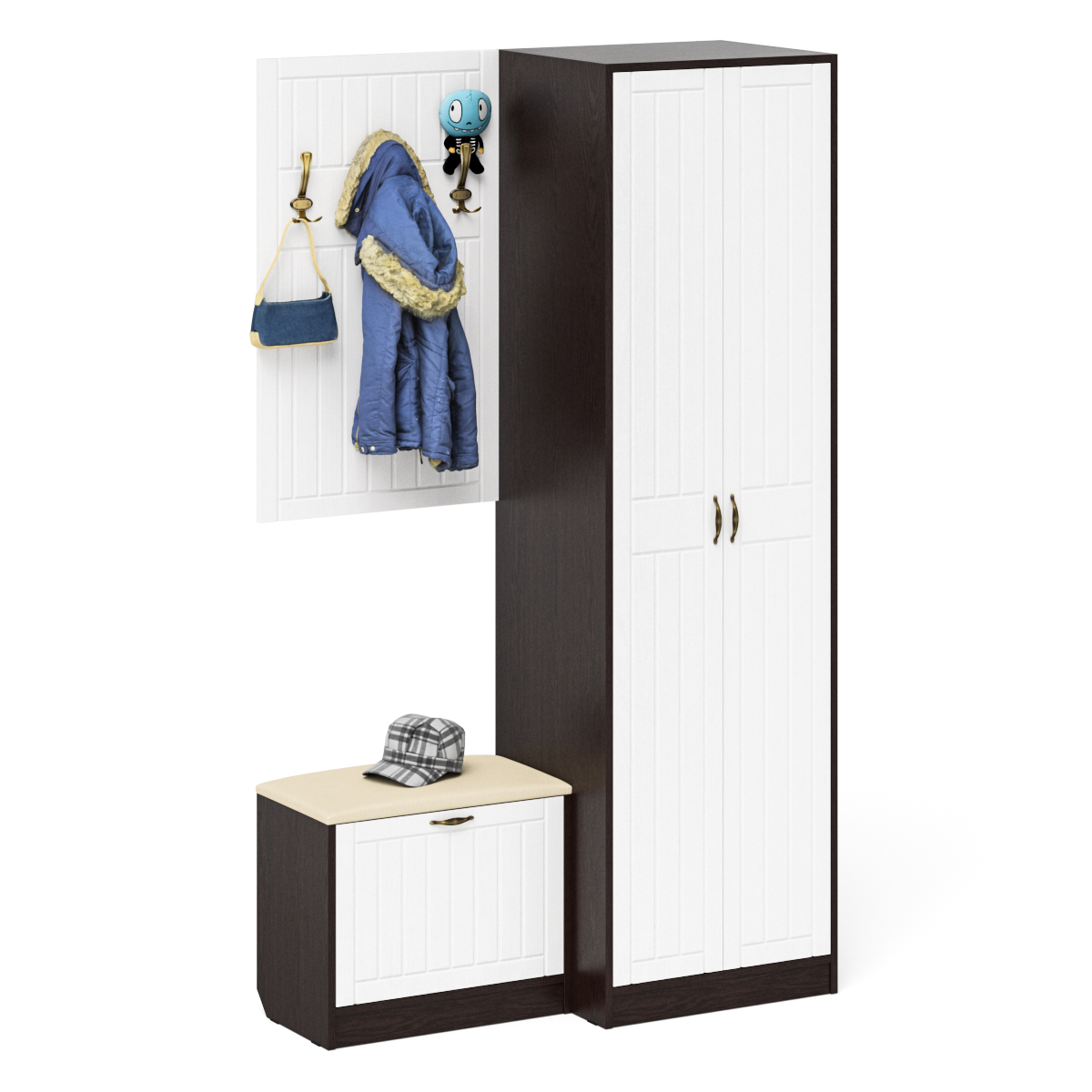 Отзывы о Столплит Шкаф в прихожую с обувницей с сиденьем и вешалкой П-6 № 12 МДФ фрезеровка прованс Белый/Венге