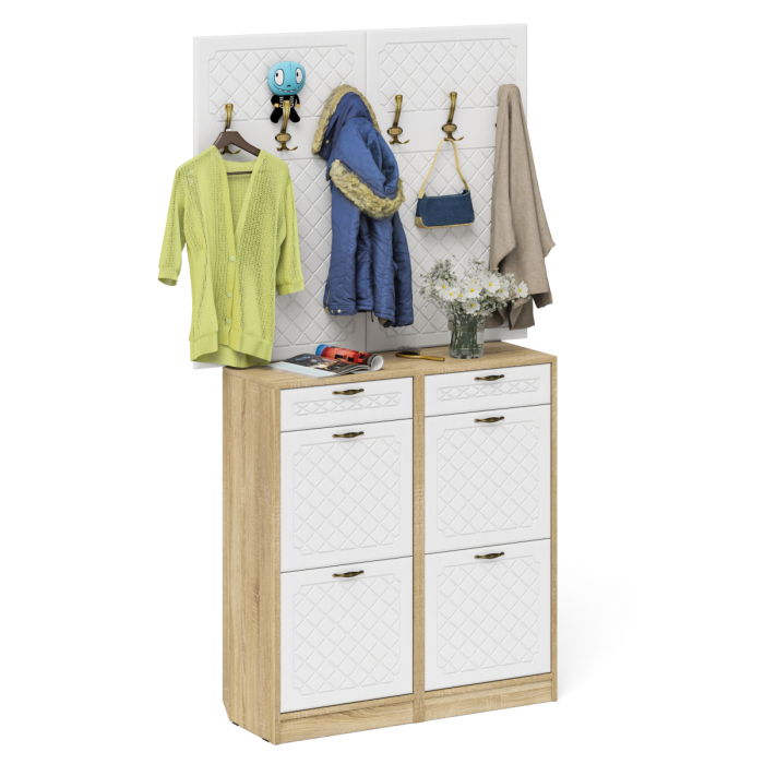 Отзывы о Столплит Две вешкалки для верхней одежды и две высоких обувницы П-6 № 04 МДФ фрезеровка ромб Белое дерево/дуб сонома