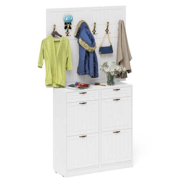Две вешкалки для верхней одежды и две высоких обувницы П-6 № 04 МДФ фрезеровка прованс Код I0000351325