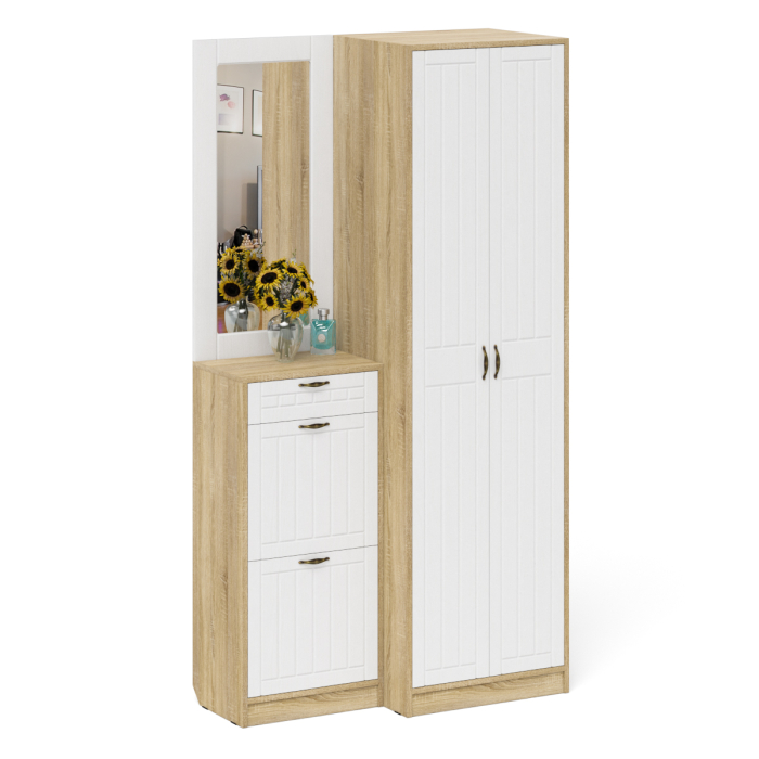 Отзывы о Столплит Зеркало для прихожей с обувницей и шкафом П-6 № 17 МДФ фрезеровка прованс Белое дерево/дуб сонома