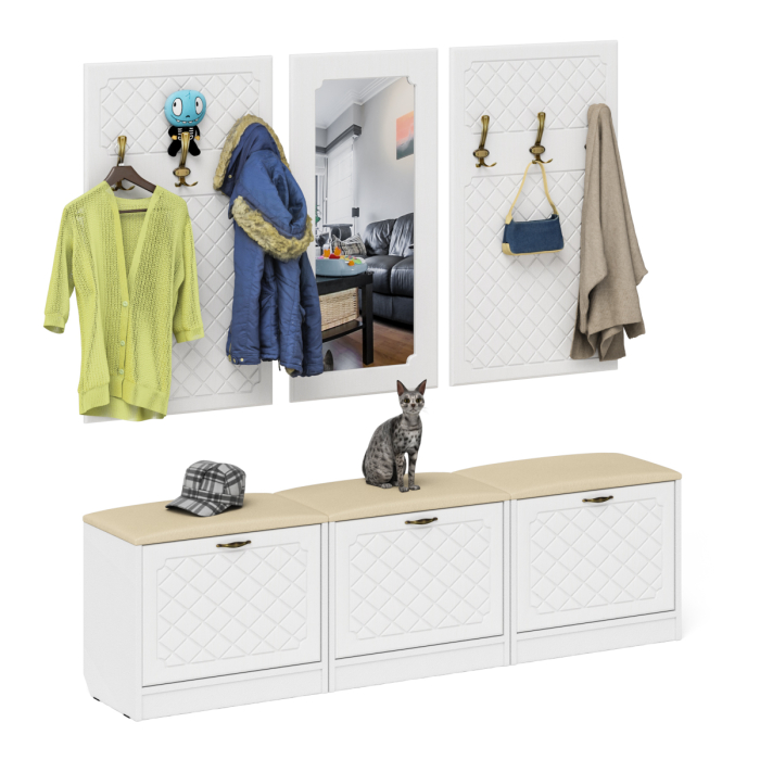 Отзывы о Столплит Набор мебели для прихожей из обувниц зеркала и вешалок П-6 № 03 МДФ фрезеровка ромб Белый