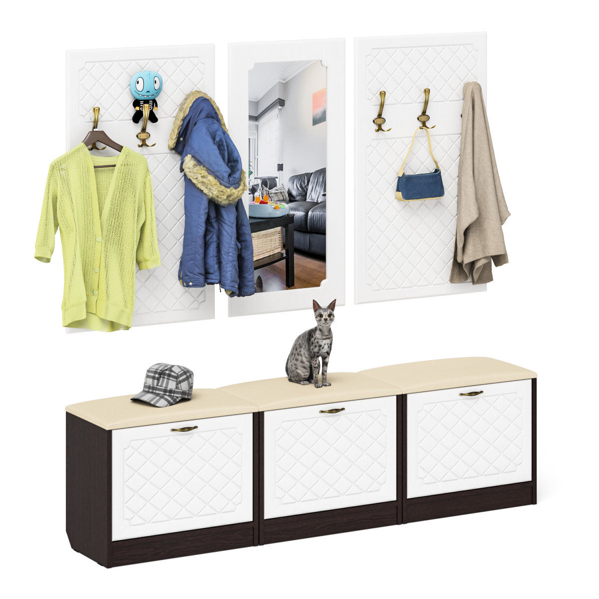 Отзывы о Столплит Набор мебели для прихожей из обувниц зеркала и вешалок П-6 № 03 МДФ фрезеровка ромб Белый/Венге