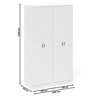 Комплектация состоит из двух шкафов для одежды объединенных в единый блок. Классический шкаф (в комплектации 2 единицы) за распашными дверками которого расположены антресольная полка для головных уборов, горизонтальная штанга и нижняя ниша для обуви. Ручки в виде скоб выполнены из металла в цвете бронза. Декоративная фрезеровка Ромб служит отличным дополнением к общему светлому тону фасада. Двери закреплены на четырёхшарнирных петлях. Фасады выполнены из МДФ односторонней белой 16 мм. и покрыта плёнкой ПВХ 0,3 мм. белое дерево. Корпуса выполнены из ламинированной ДСП 16 мм., которая имеет гигиенический сертификат Е1 и относится к самой безопасной группе ДСП. Торцы деталей облицованы кромкой ПВХ 2 мм. и 0,4 мм., что улучшает эстетический вид и продлевает срок службы обувнице. На опорах мебели используются пластиковые подпятники, сохраняющие Ваше напольное покрытие от повреждений. Поставляются два шкафа для прихожей П-6 в разобранном виде в надёжной упаковке, с комплектом сборочной фурнитуры и инструкцией по сборке. Изображения двух шкафов для прихожей П-6 Вы можете найти выше в начале страницы.