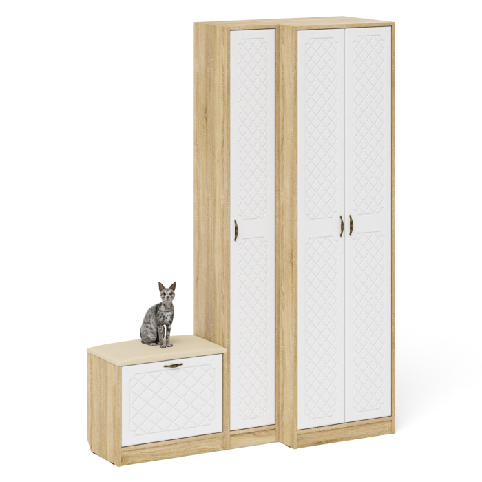 Отзывы о Столплит Шкаф с пеналом и обувницей с сиденьем П-6 № 25 МДФ фрезеровка ромб Белое дерево/дуб сонома