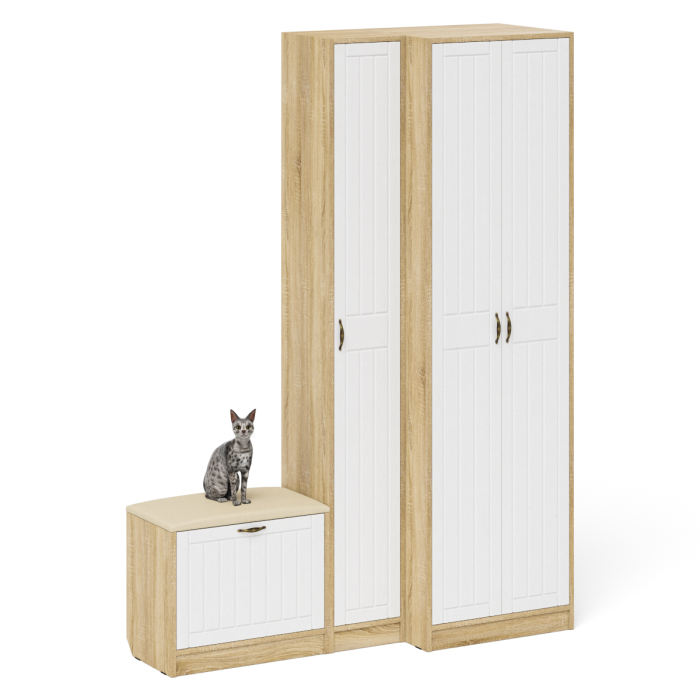 Отзывы о Столплит Шкаф с пеналом и обувницей с сиденьем П-6 № 25 МДФ фрезеровка прованс Белое дерево/дуб сонома