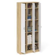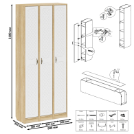 Комплектация состоит из трех узких пеналов объединненых в единый блок. Классический узкий пенал, за распашной дверью которого расположены 4 полки. В комплектации три пенала. Сторону открывания дверей Вы определяете при сборке, что расширяет возможности удобной меблировки прихожей. Ручки в виде скоб выполнены из металла в цвете бронза. Декоративная фрезеровка Ромб служит отличным дополнением к общему светлому тону фасада. Выдвижные ящики установлены на металлические направляющие, обеспечивающие надёжное прямолинейное движение. Двери закреплены на четырёхшарнирных петлях. Фасады выполнены из МДФ односторонней белой 16 мм. и покрыта плёнкой ПВХ 0,3 мм. белое дерево. Корпуса выполнены из ламинированной ДСП 16 мм., которая имеет гигиенический сертификат Е1 и относится к самой безопасной группе ДСП. Торцы деталей облицованы кромкой ПВХ 2 мм. и 0,4 мм., что улучшает эстетический вид и продлевает срок службы обувнице. На опорах мебели используются пластиковые подпятники, сохраняющие Ваше напольное покрытие от повреждений. Поставляются три пенала в прихожую П-6 в разобранном виде в надёжной упаковке, с комплектом сборочной фурнитуры и инструкцией по сборке. Изображения трех пеналов в прихожую П-6 Вы можете найти выше в начале страницы.