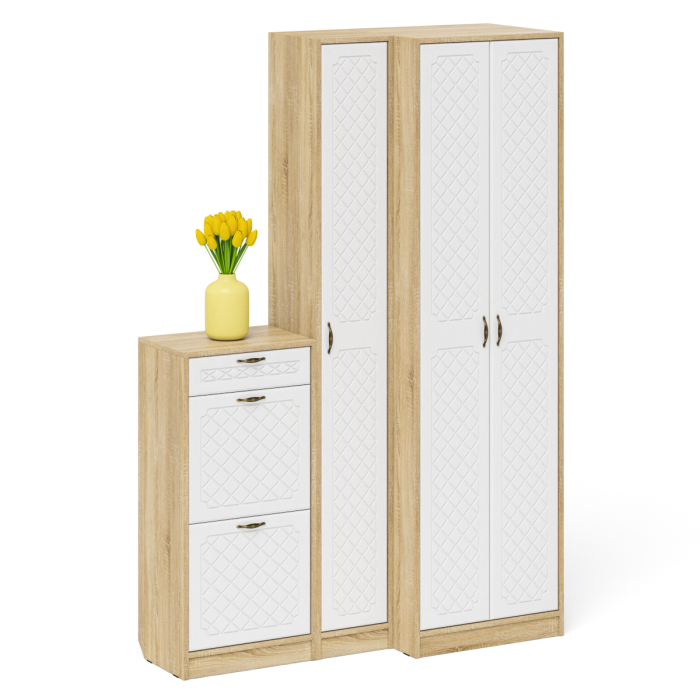 Отзывы о Столплит Обувница П-6 две секции с пеналом и шкафом № 28 МДФ фрезеровка ромб Белое дерево/дуб сонома