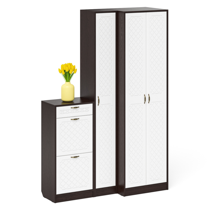 Отзывы о Столплит Обувница П-6 две секции с пеналом и шкафом № 28 МДФ фрезеровка ромб Белый/Венге
