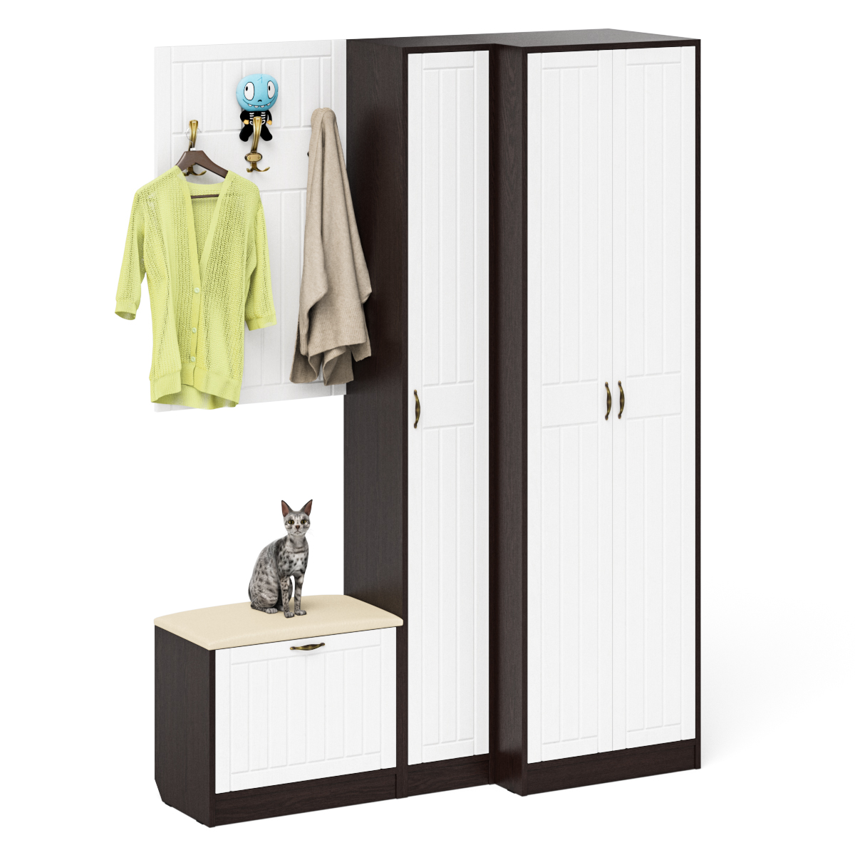 Отзывы о Столплит Пенал для прихожей с обувницей с вешалкой и шкаф П-6 № 27 МДФ фрезеровка прованс Белый/Венге
