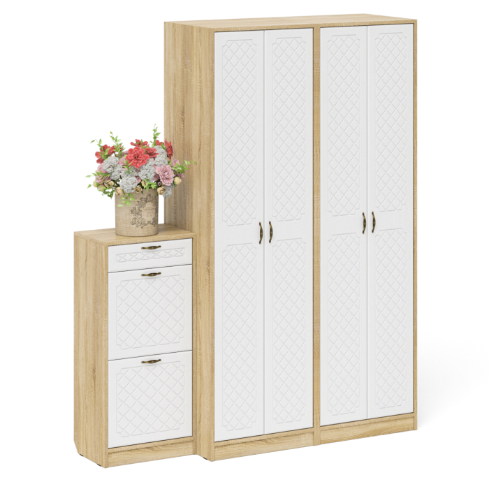 Отзывы о Столплит Тумба для обуви две секции и два шкафа в прихожую П-6 № 13 МДФ фрезеровка ромб Белое дерево/дуб сонома