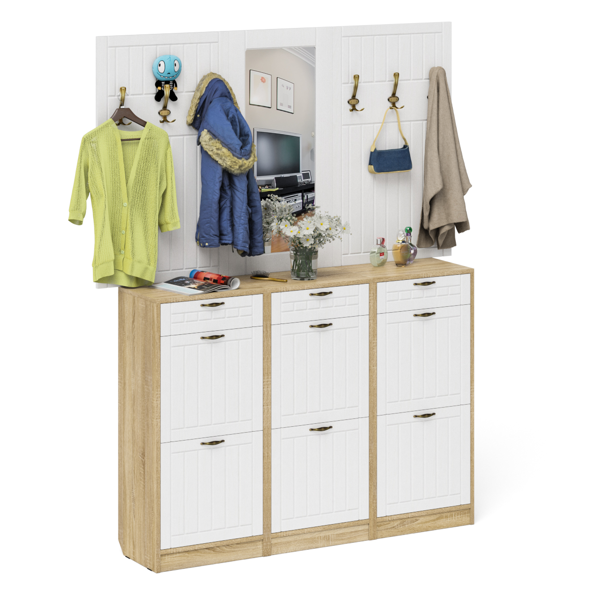 Прихожая П-6 № 6 МДФ фрезеровка прованс (Белое дерево/дуб сонома) Код I0000351458