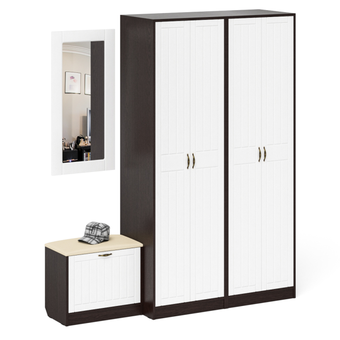 Прихожая П-6 компоновка № 8 МДФ фрезеровка прованс (Белый/Венге) Код I0000351463