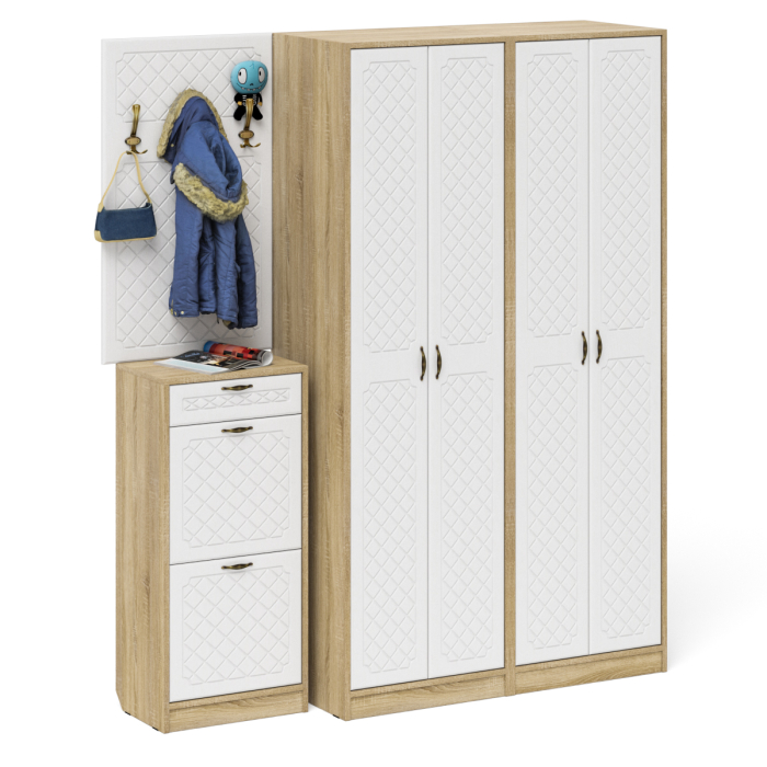 П-6 прихожая компоновка № 15 МДФ фрезеровка ромб (Белое дерево/дуб сонома) Код I0000351485