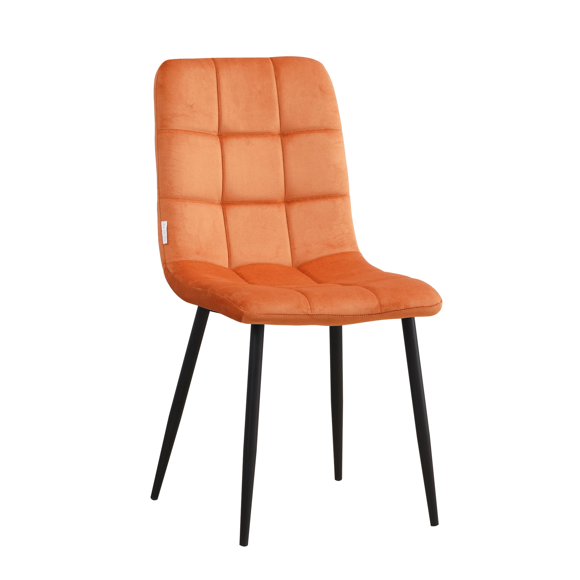Стул обеденный в мягкой обивке ВЕЛЮР. Сидение и спинка выполнены из многослойной фанеры. Каркас выполен из металла крашеный в черный цвет.