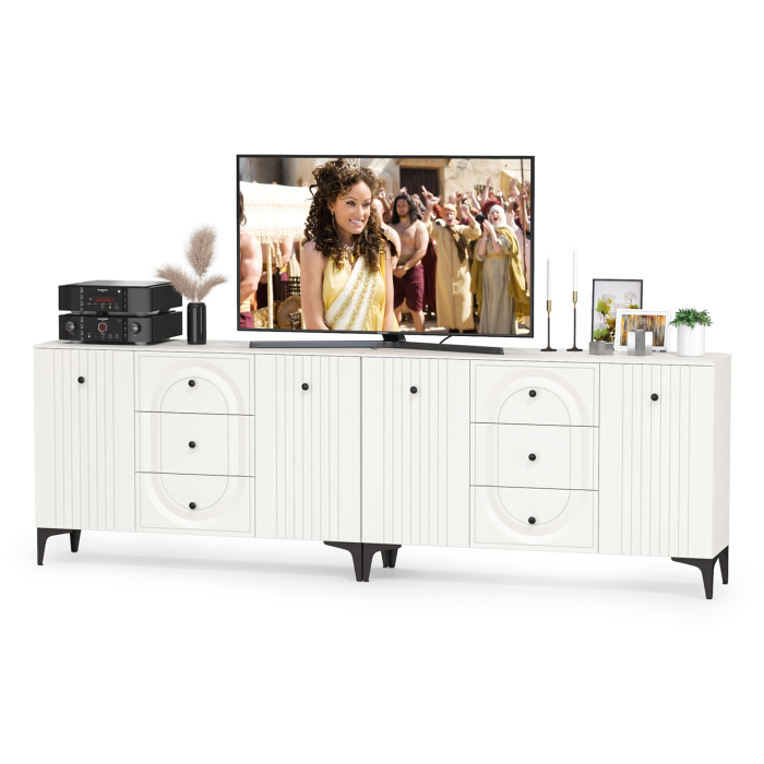 Два Комода Валенсия можно использовать как ТВ-тумбу - стильный набор для светлой гостиной в популярном стиле ар-деко.