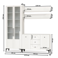 Сервант с комодом и двумя навесными полками Валенсия № 97 - стильный набор для светлой гостиной в популярном стиле ар-деко.