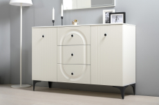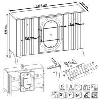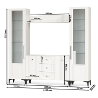 Графичное и стильное сочетание белоснежных фасадов и черных деталей эффектно расставляет акценты на мебели. Геометричный рисунок фрезеровки на белоснежных фасадах даёт развитый светотеневой рисунок. Комплектация состоит из комод-ТВ-тумбы Валенсия 13.309, даух пеналов Валенсия 13.218 и навесной полки Валенсия 16.481. Широкий комод с распашными дверками по бокам и тремя выдвижными ящиками в центре - вместительный и функциональный. Можно использовать как ТВ-тумбу. Над комодом расположена навесная открытая полка с задней панелью из МДФ. Полочка и задняя панель соединены металлическими кронштейнами черного цвета, усиливающие конструкцию и служащими креплениями к стене. Каждый пенал украшен оригинальной стеклянной вставкой на фасаде, за которой расположены стеклянные полки. За дверкой каждого пенала расположены 6 полок - четыре верхние полочки выполнены из стекла, нижние две из ЛДСП. Универсальная сборка - сторону открывания двери Вы определяете при сборке. Ящики установлены на направляющие скрытого монтажа с доводчиками. Двери закреплены на четырехшарнирных петлях. Установлена мебель на высокие ножки, что делает конструкцию лёгкой и воздушной и практичной в плане уборки. Мебель выполнена из экологически чистой ламинированной ДСП 16 мм, класса эмиссии Е1, детали обработаны ПВХ-кромкой. Фасады из МДФ с матовой ПВХ-плёнкой. Такое решение делает мебель визуально более ""мягкой"", комфортной и расслабляющей, что особенно актуально для спальни. Поставляется в разобранном виде в надёжной упаковке, с комплектом сборочной фурнитуры и инструкцией по сборке.