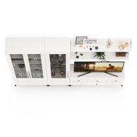 Сервант три стеклянных дверки с тумбой-ТВ и двумя полками Валенсия № 78 - стильный набор для светлой гостиной в популярном стиле ар-деко.