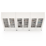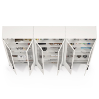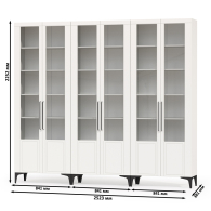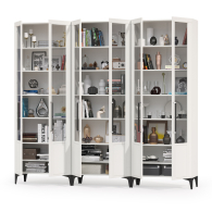 Графичное и стильное сочетание белоснежных фасадов и черных деталей эффектно расставляет акценты на мебели. Геометричный рисунок фрезеровки на белоснежных фасадах даёт развитый светотеневой рисунок. Комплектация состоит из трех сервантов Валенсия 13.217. Серванты объединены в единый блок, образующий стенку-библиотеку. Каждый двухдверный сервант Валенсия 13.217 оснащен стеклянными вставками в дверях. Можно использовать как книжный шкаф и как витрину для наград, фотографий, поделок или элементов декора. За распашными дверями каждого серванта расположены 6 полок из ЛДСП. Двери закреплены на четырехшарнирных петлях. Установлена мебель на высокие ножки, что делает конструкцию лёгкой и воздушной и практичной в плане уборки. Мебель выполнена из экологически чистой ламинированной ДСП 16 мм, класса эмиссии Е1, детали обработаны ПВХ-кромкой. Фасады из МДФ с матовой ПВХ-плёнкой. Такое решение делает мебель визуально более ""мягкой"", комфортной и расслабляющей, что особенно актуально для спальни. Поставляется в разобранном виде в надёжной упаковке, с комплектом сборочной фурнитуры и инструкцией по сборке.