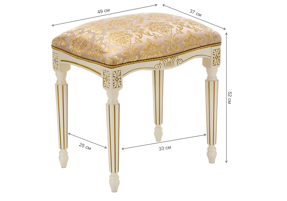 Материал каркаса - Массив бука; Материал сиденья - Ткань; Материал ножек - Массив бука; Материал обивки - Ткань; Цвет каркаса - бежевый; Цвет обивки - бежевый; Ширина - 49; Глубина - 37; Высота - 52.