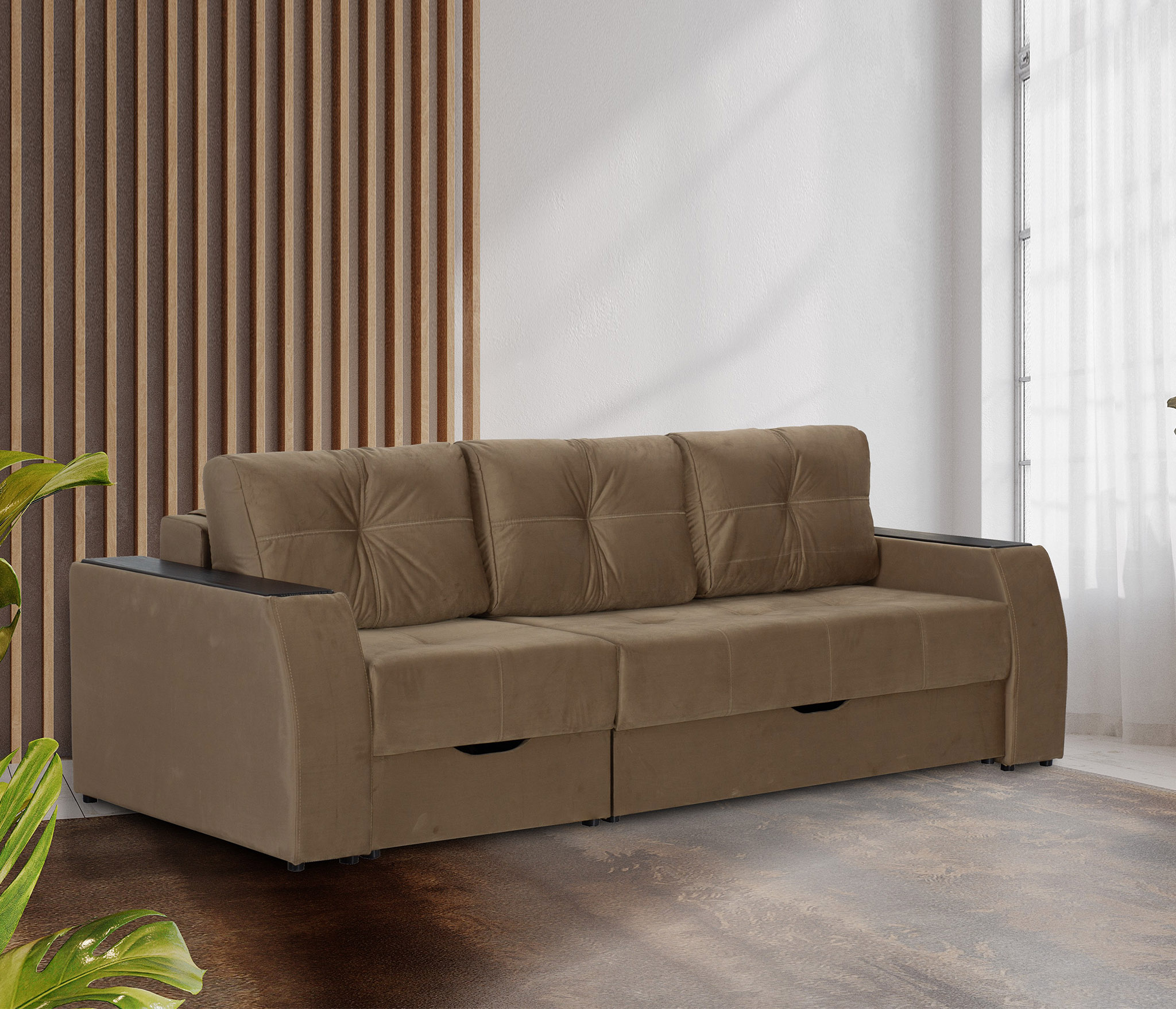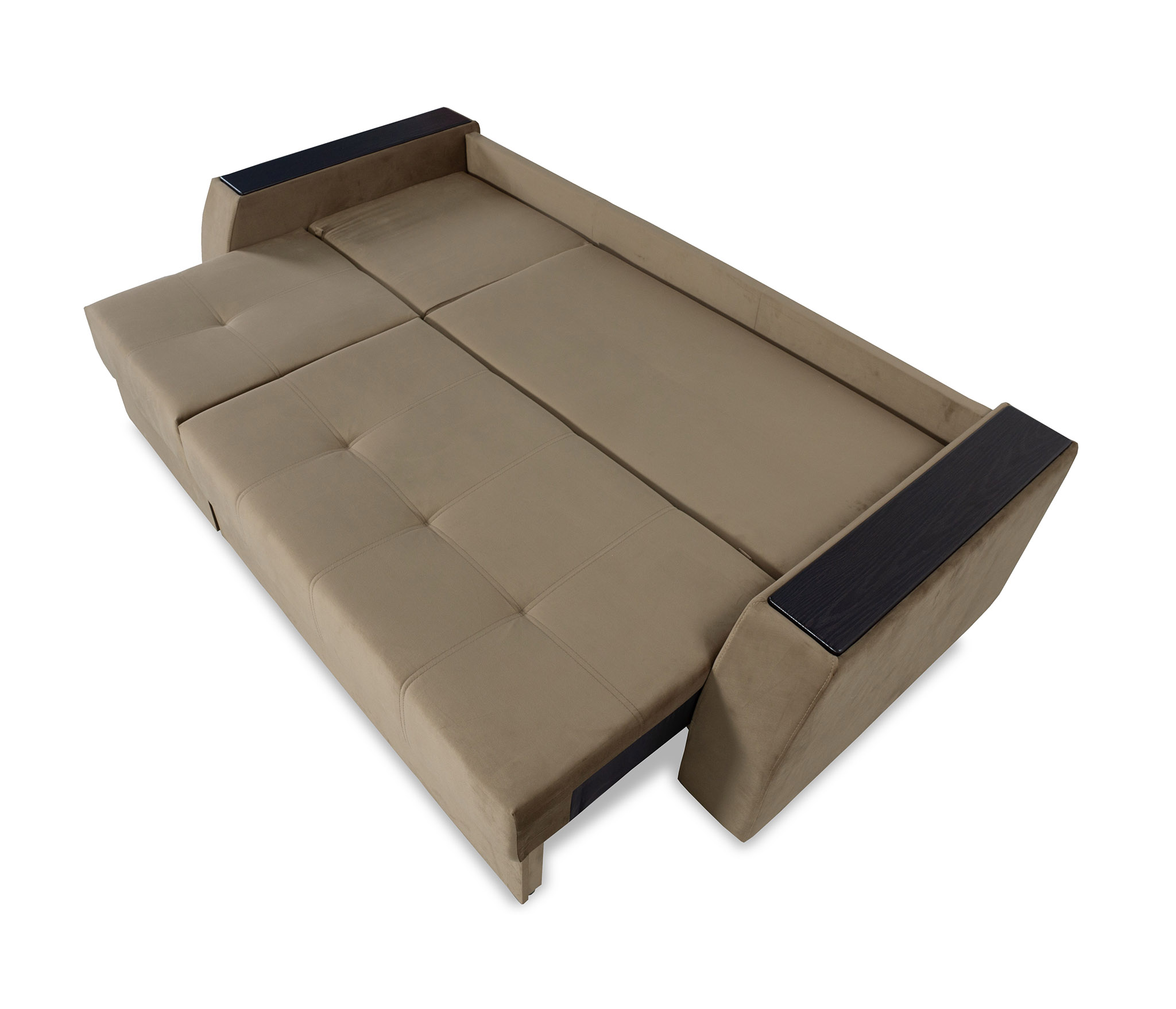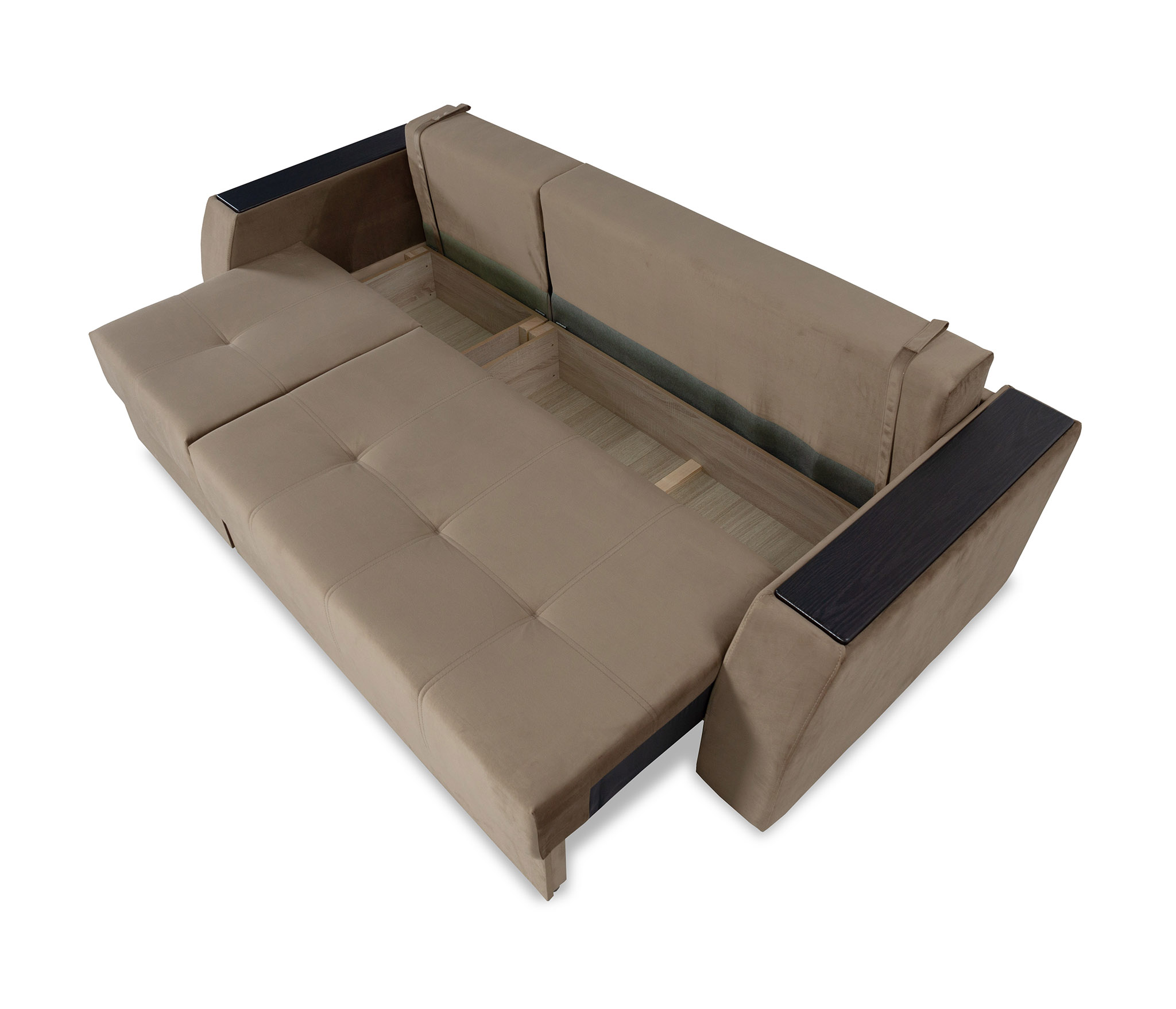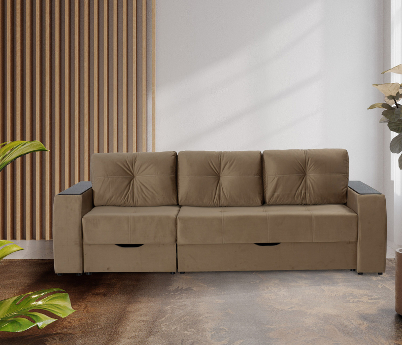 Диван оснащён дополнительными отсеком для хранения вещей. Следовательно, в нём можно аккуратно сложить спальные принадлежности и ваши личные вещи.