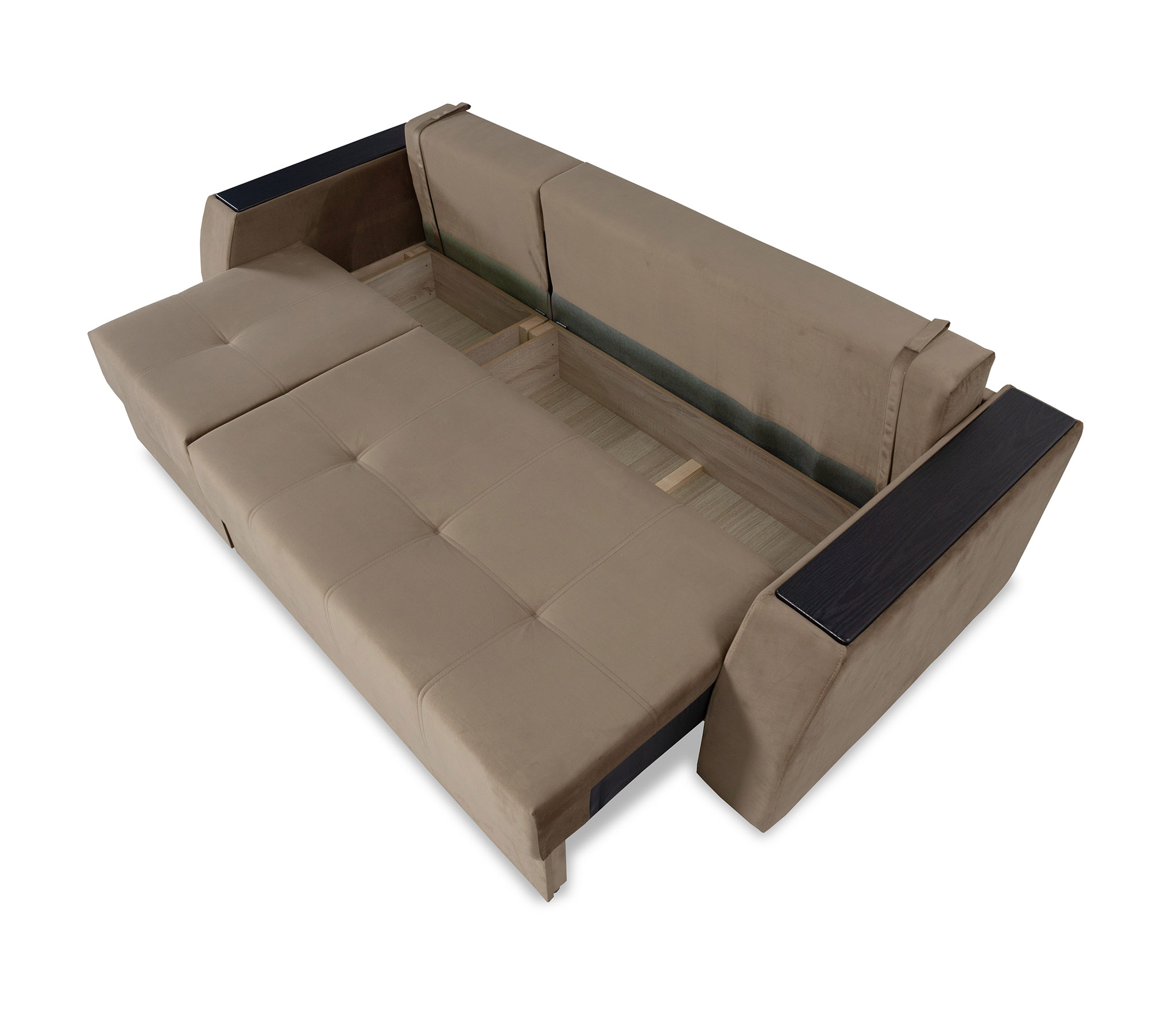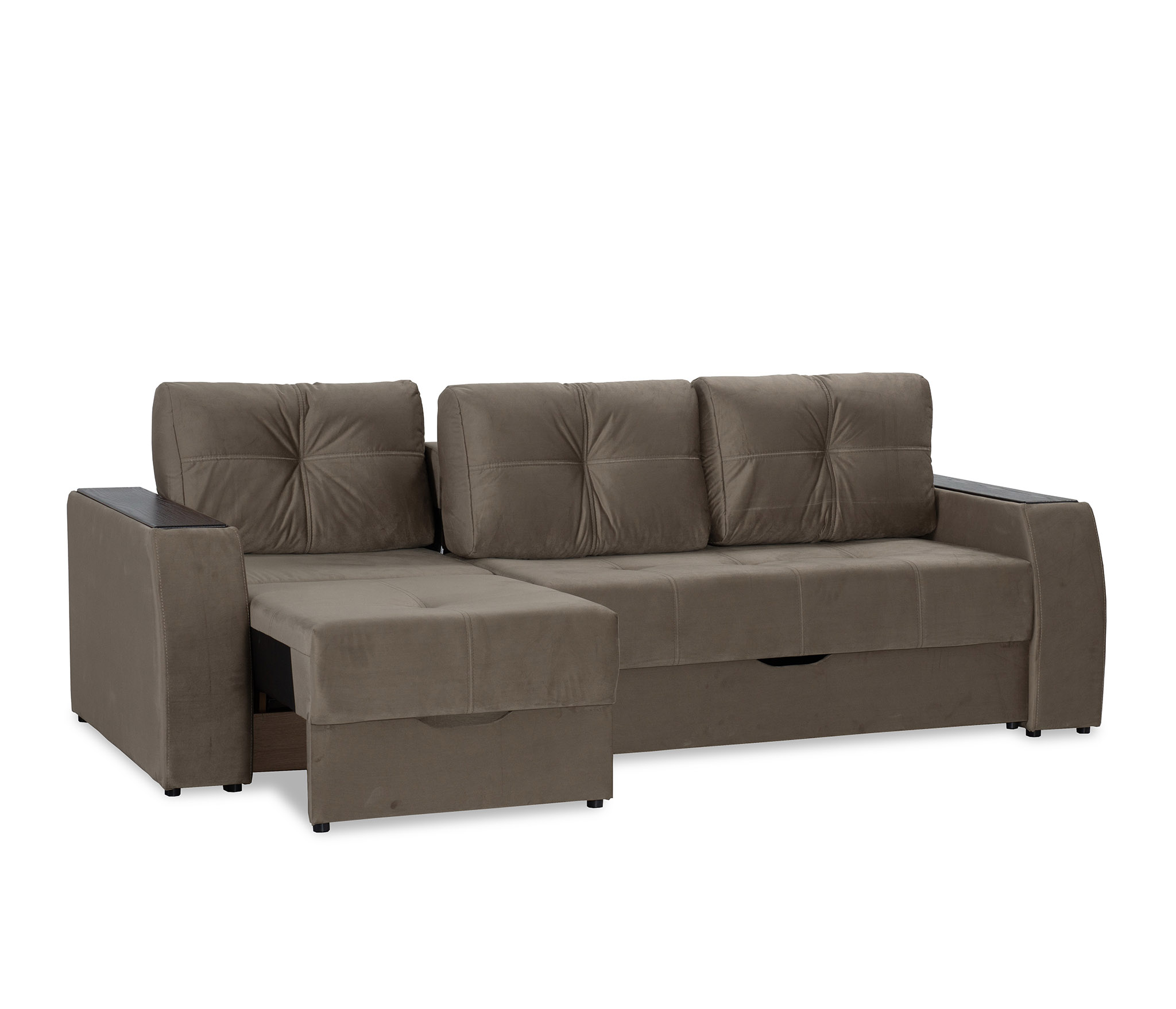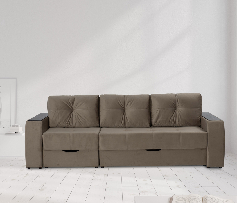 Диван оснащён дополнительными отсеком для хранения вещей. Следовательно, в нём можно аккуратно сложить спальные принадлежности и ваши личные вещи.