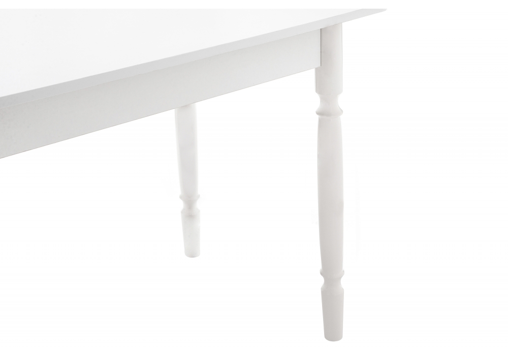 Расстояние между ножками по ширине: 45 см. Материал каркаса - Массив дерева; Материал ножек - Массив дерева; Материал столешницы - ЛДСП; Цвет каркаса - Белый; Цвет ножек - Белый; Цвет столешницы - Белый; Цвет подстолья - Белый; Ширина - 60; Высота - 74; Длина - 100.