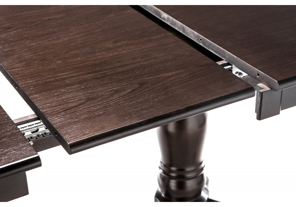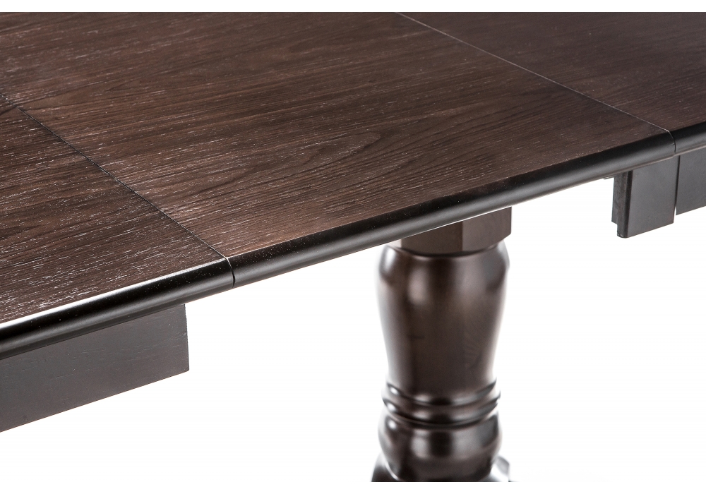 Материал каркаса - Массив дерева; Материал ножек - Массив дерева; Материал столешницы - МДФ / шпон; Цвет каркаса - Шоколад; Цвет ножек - Шоколад; Цвет столешницы - Шоколад; Цвет подстолья - Шоколад; Ширина - 80; Высота - 79; Длина стола в разложенном виде - 165; Длина - 130.