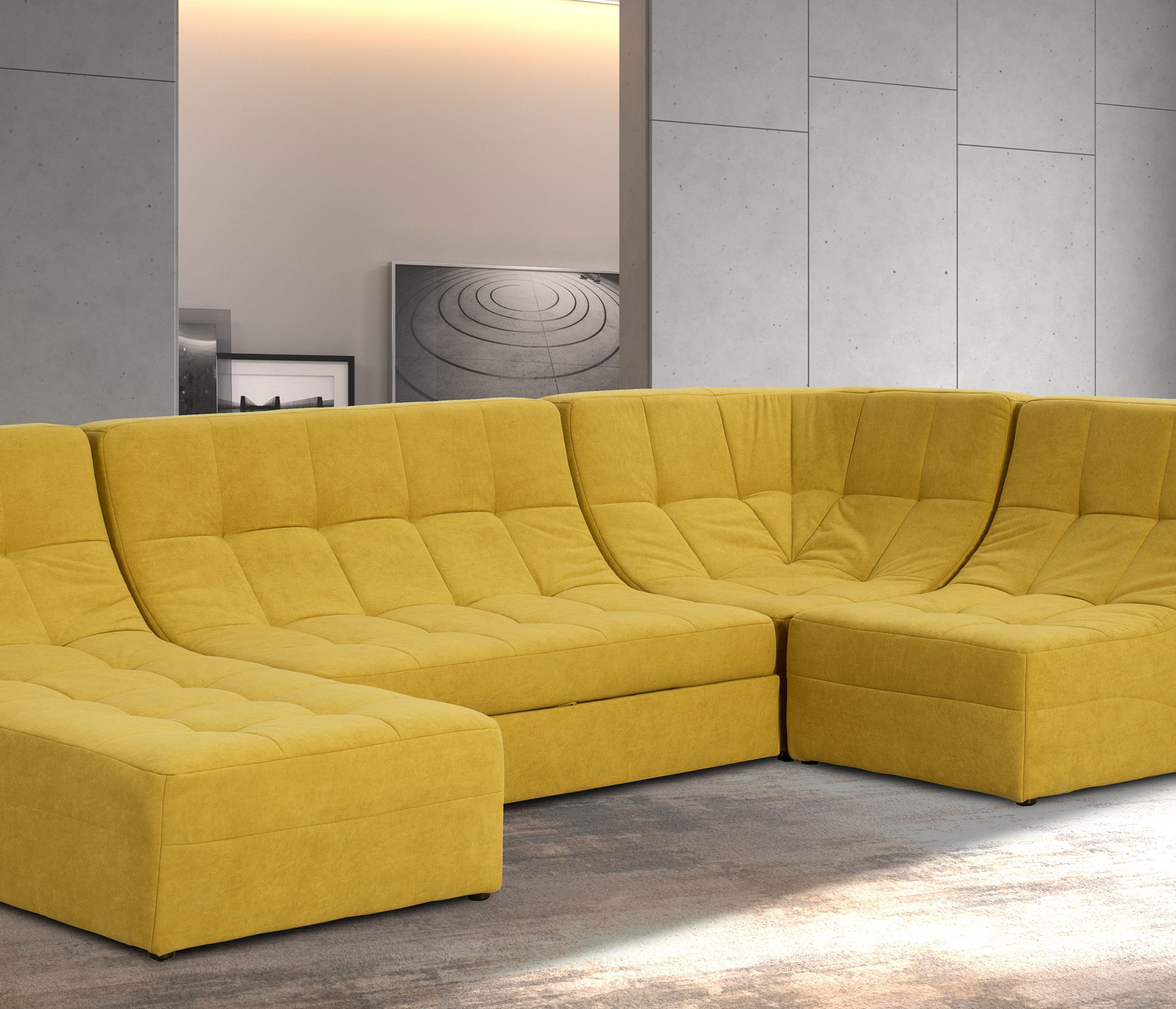 Модульный диван Палладиум 2 ПДУ, открытой, манящей, обволакивающей формы с округлыми изгибами.