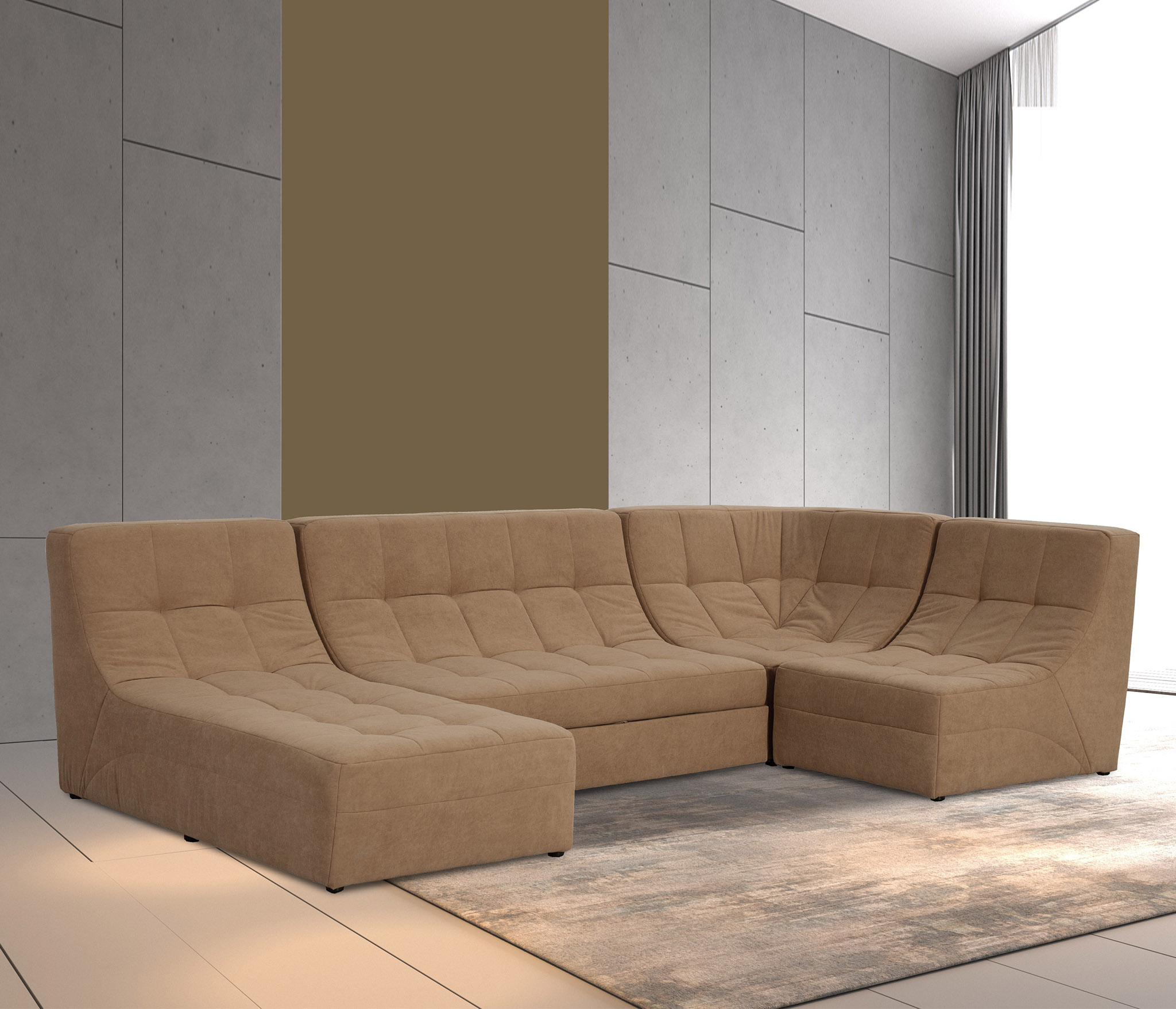 Модульный диван Палладиум 2 ПДУ, открытой, манящей, обволакивающей формы с округлыми изгибами.