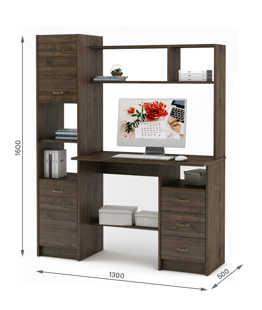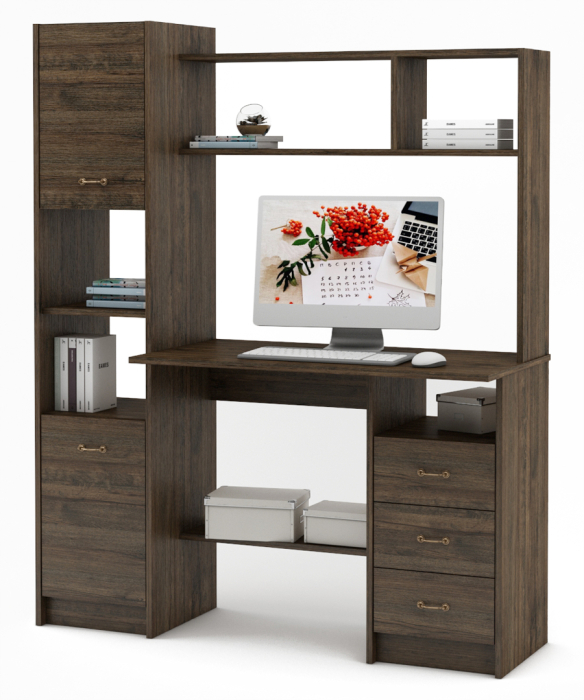 Компьютерный стол Август-3 сочетает в себе преимущества просторного письменного стола, вместительного стеллажа или шкафа с открытыми и закрытыми полками, превращаясь тем самым в полноценное рабочее место в офисе или функциональное место для школьника в детской комнате. На столе хватит места для ноутбука и компьютера, а открытые полки можно использовать для книг, канцелярии или документов. Верхнюю полку можно использовать в качестве подставки под принтер, а системный блок поставить под стол.