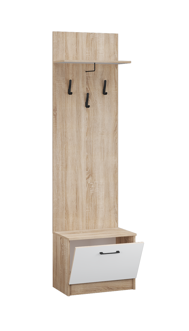 Тумба с вешалкой, полкой-антресолью, сиденьем и отсеком для хранения обуви.