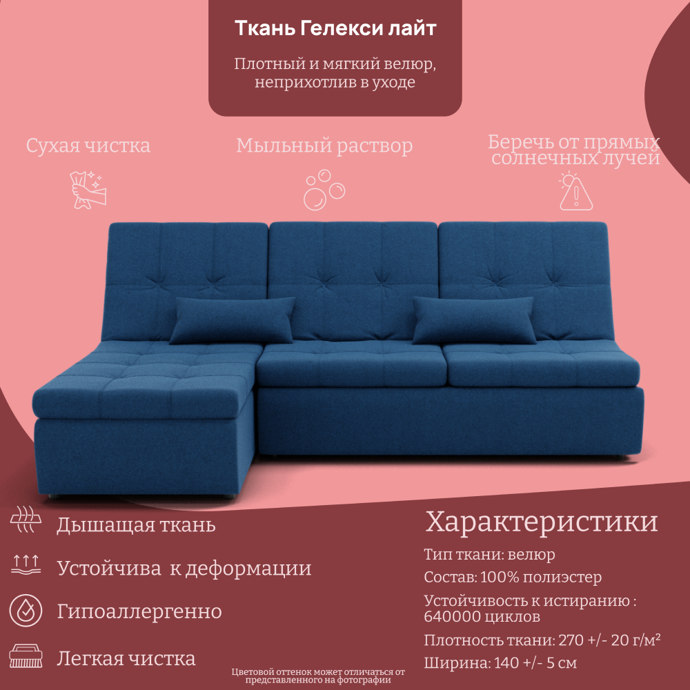 Отзывы о Столплит Угловой диван Калифорния-2 ППУ, велюр Синий