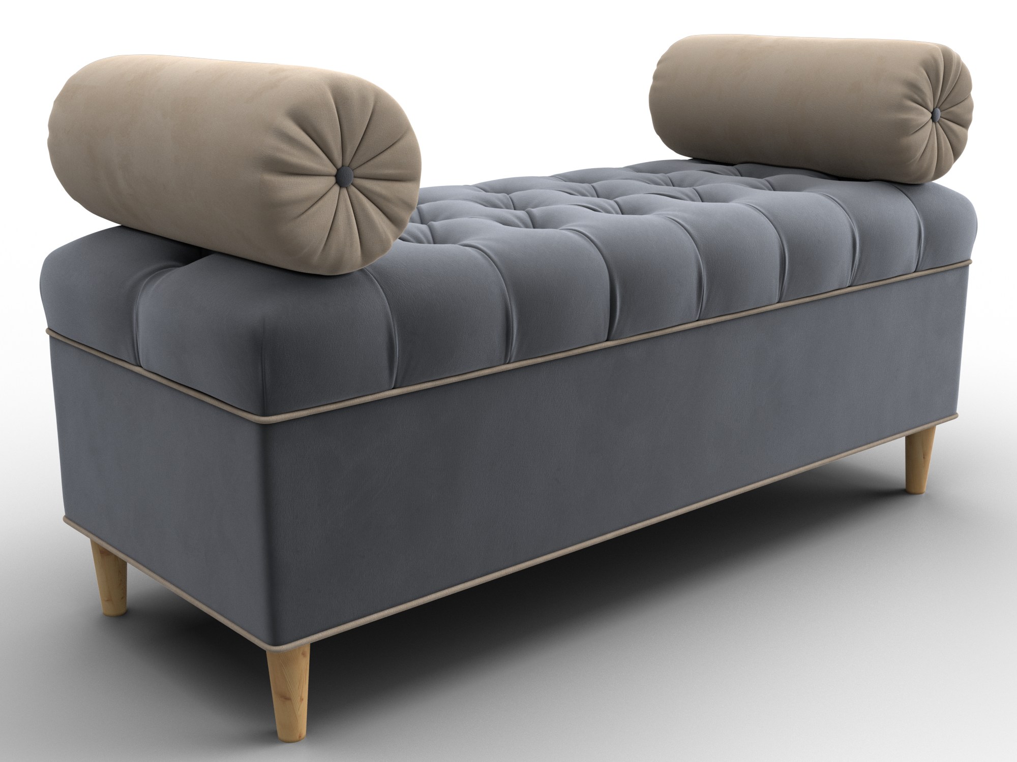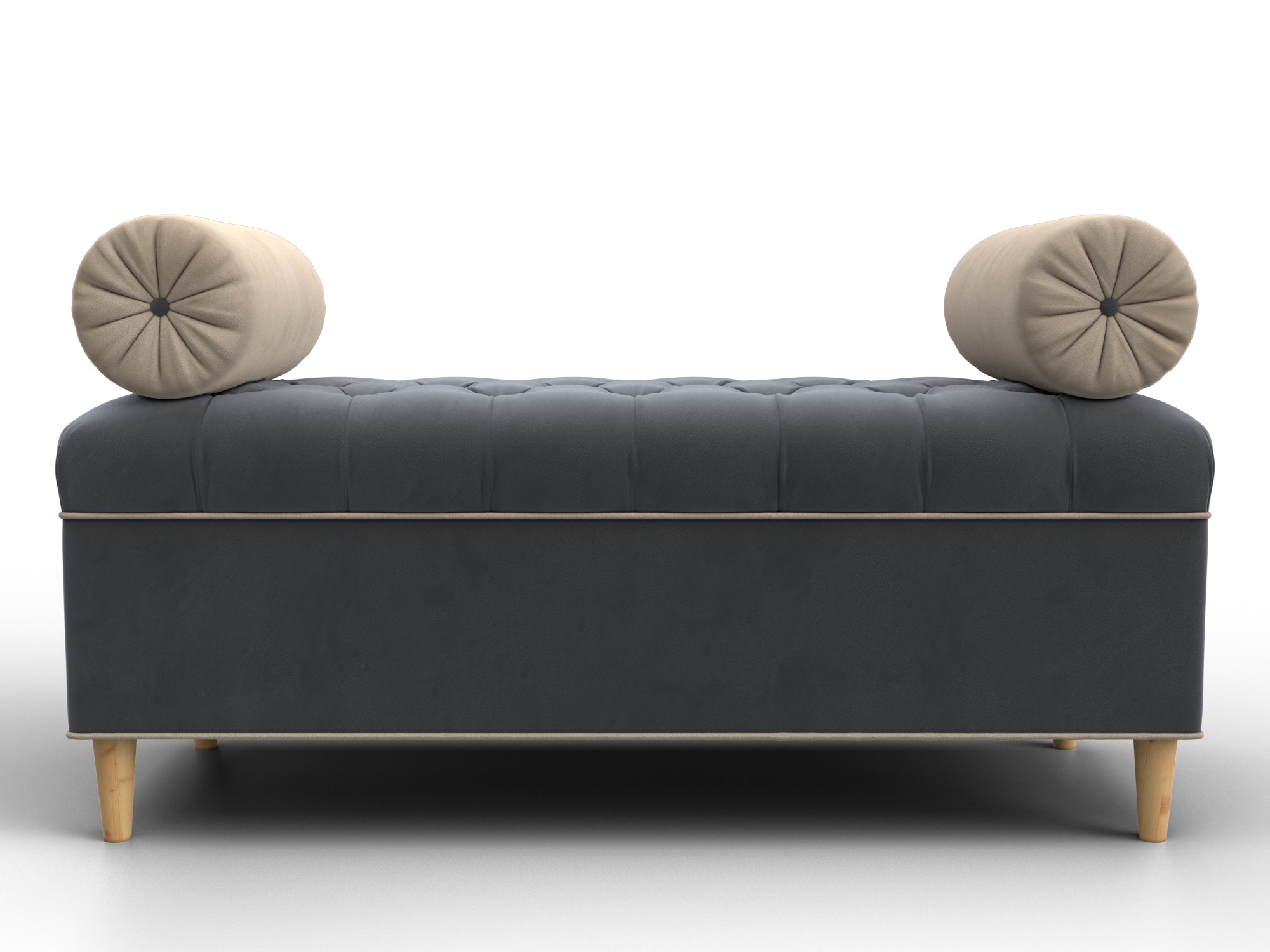 Глория – удлиненная банкетка без спинки, дополненная двумя боковыми пуфиками. Модель функциональна, подходит для размещения в спальне, гостиной и даже коридоре. Изделие можно приставить к кровати, либо поставить возле стенки в гардеробной.