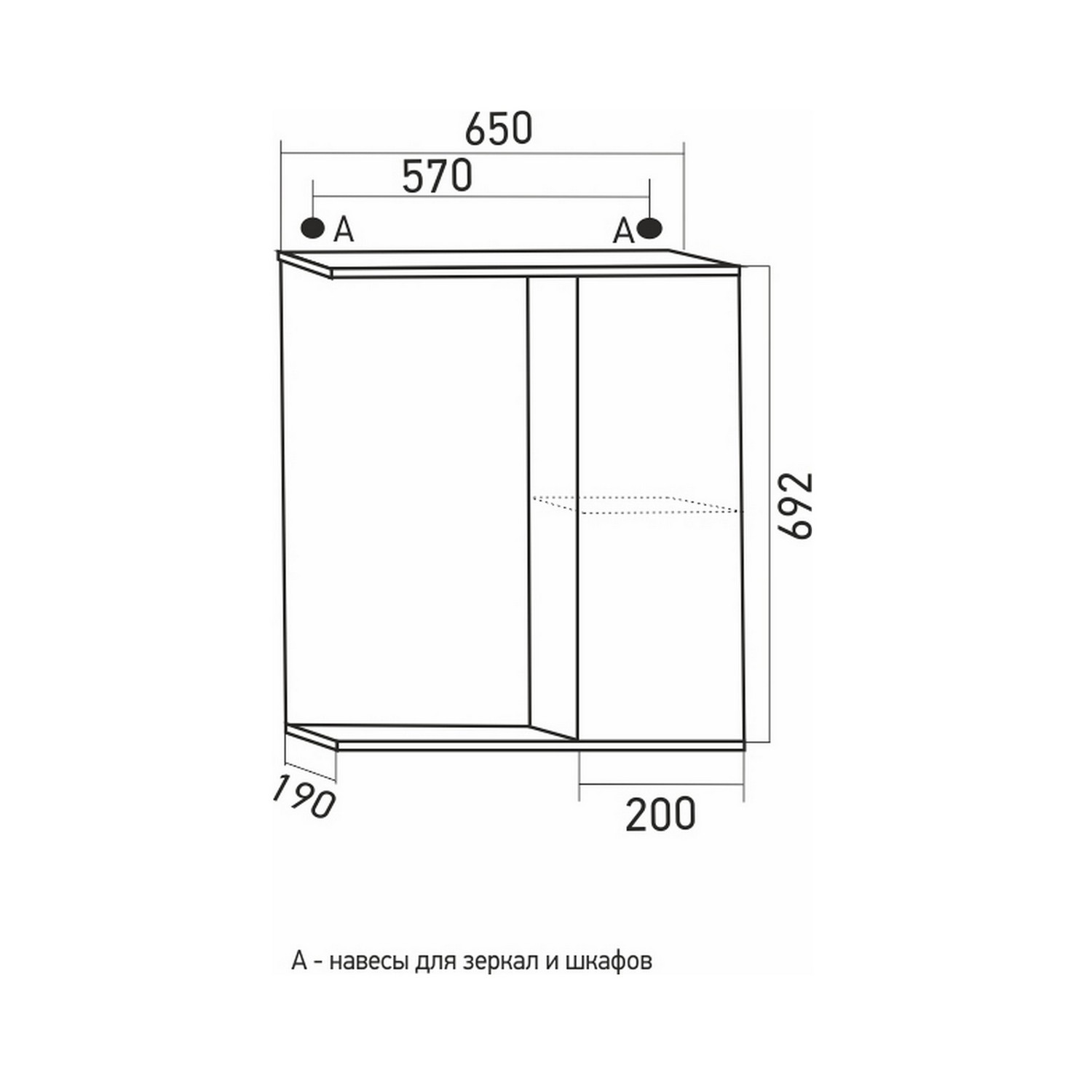 Шкаф навесной Росток 65 правый без подсветки (ПВХ) (Белый) Код I0000353132