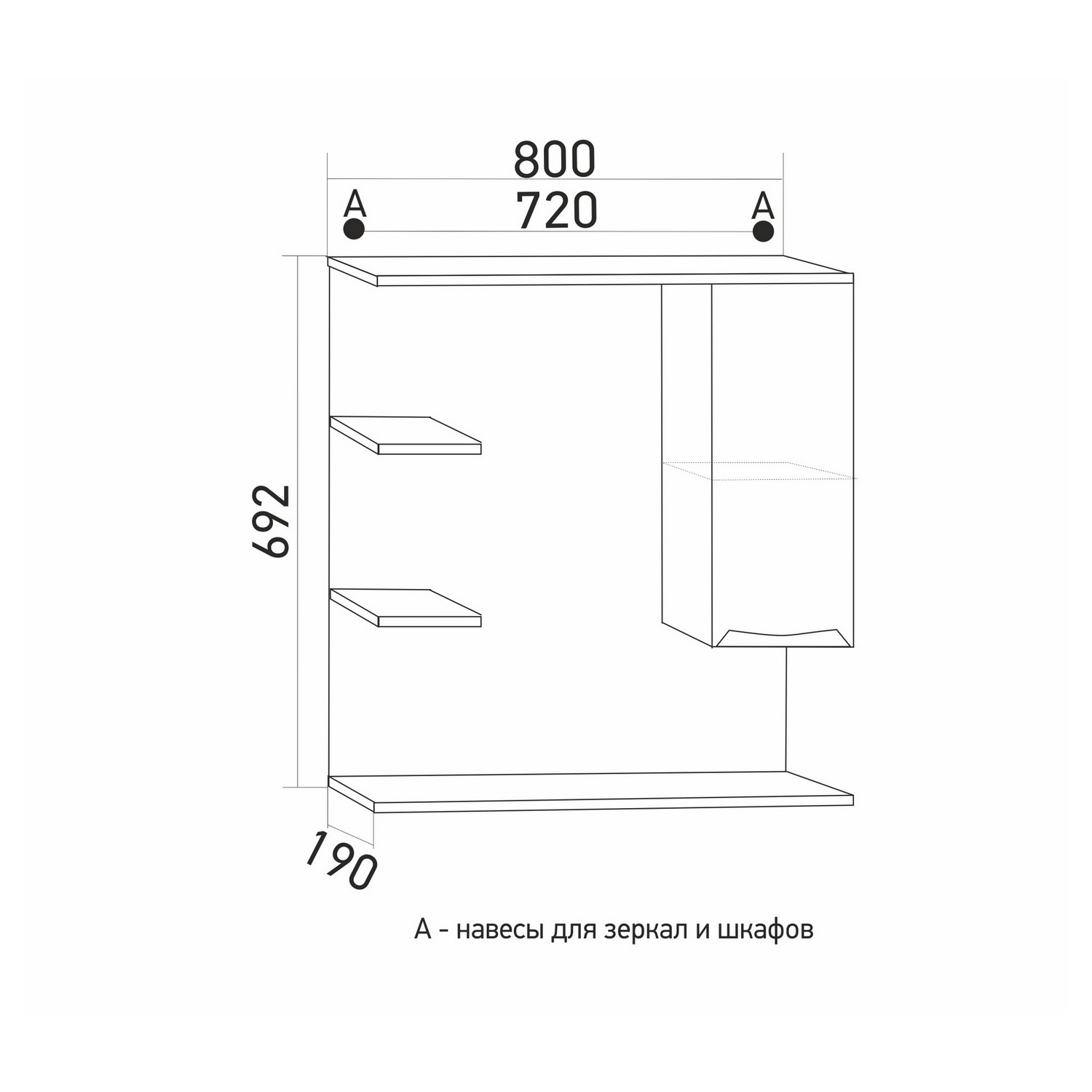 Шкаф навесной ЭТЬЕН-80 правый с подсветкой (ПВХ) Код I0000353151