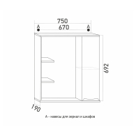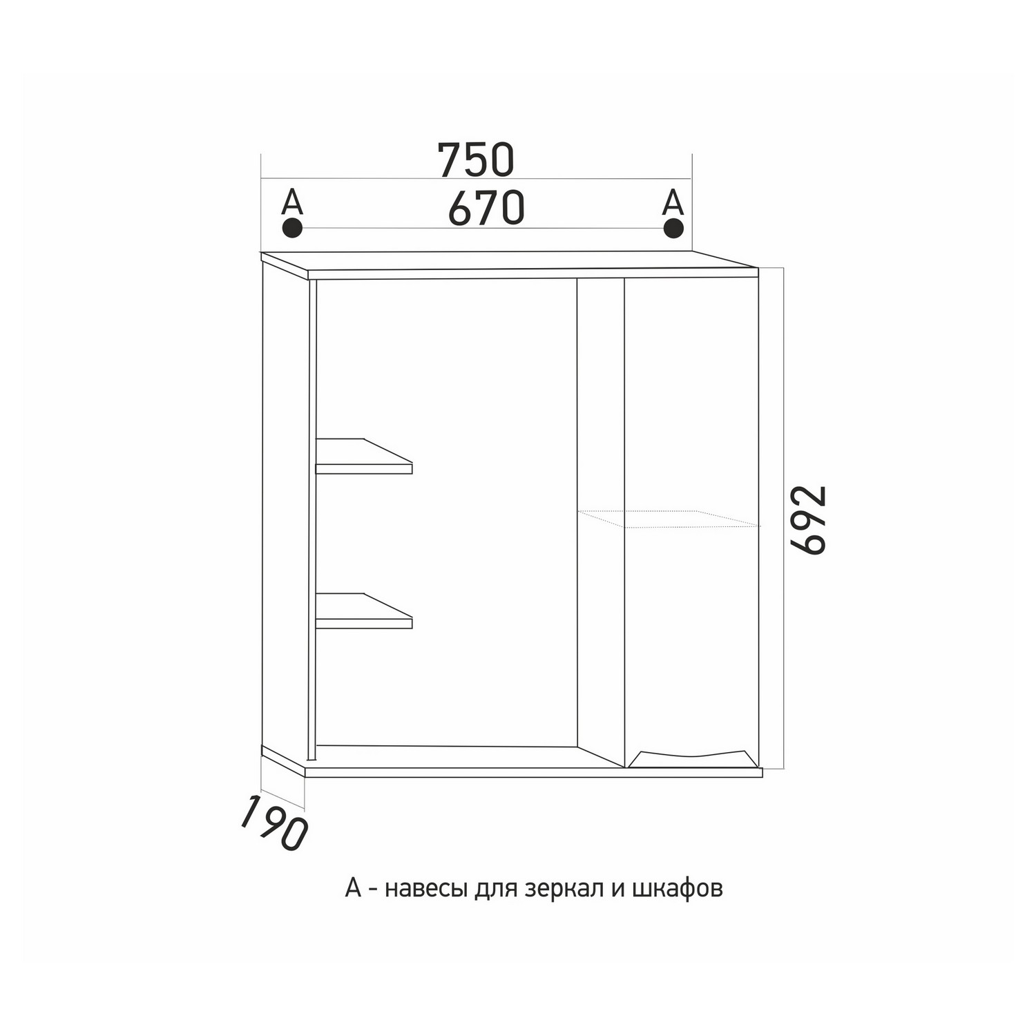 Шкаф навесной ЭТЬЕН-75 правый с подсветкой (ПВХ) (Белый) Код I0000353153