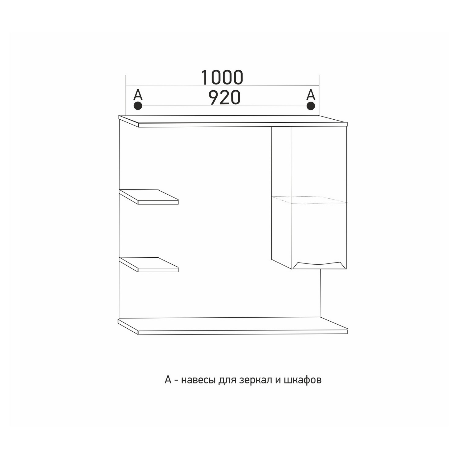 Шкаф навесной ЭТЬЕН-100 правый с подсветкой (ПВХ) Код I0000353162