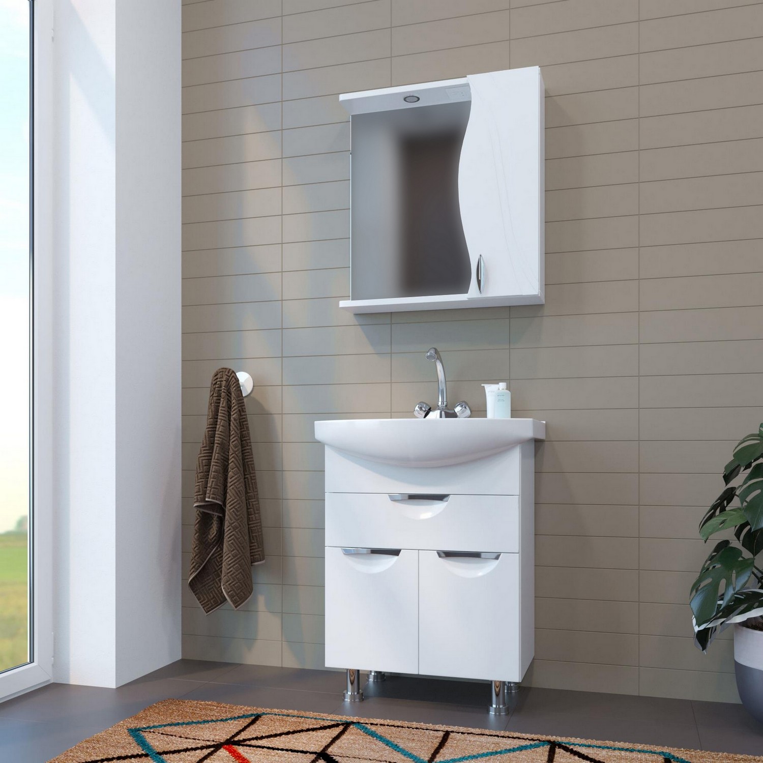 Комплект мебели предназначен для небольших ванных комнат. Изящно вьющиеся линии, украшающие фасады мебели, придадут ванной легкости, а тщательно продуманная конструкция и организация внутреннего пространства позволяет навести порядок даже в небольшой ванной.