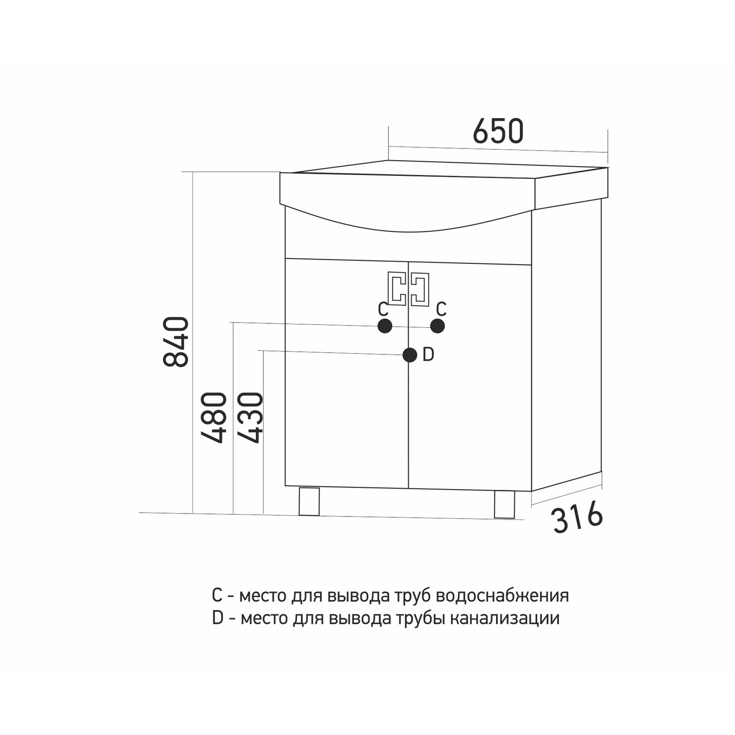 Тумба д/ванной КВАДРО-65 под умывальник Элеганс-65 (ПВХ) Код I0000353290