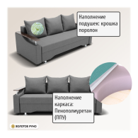 Имеет практичные подушки со съёмными чехлами, которые легко можно постирать.