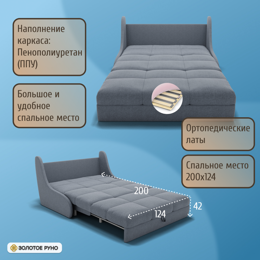 Отзывы о Столплит Прямой диван Куба на 1200 ППУ, велюр Серо-голубой