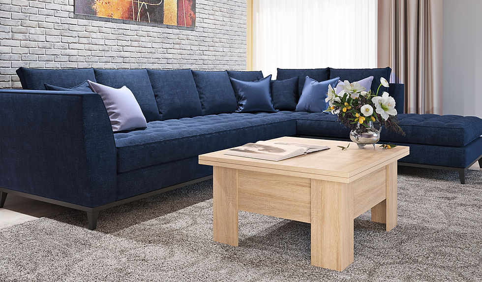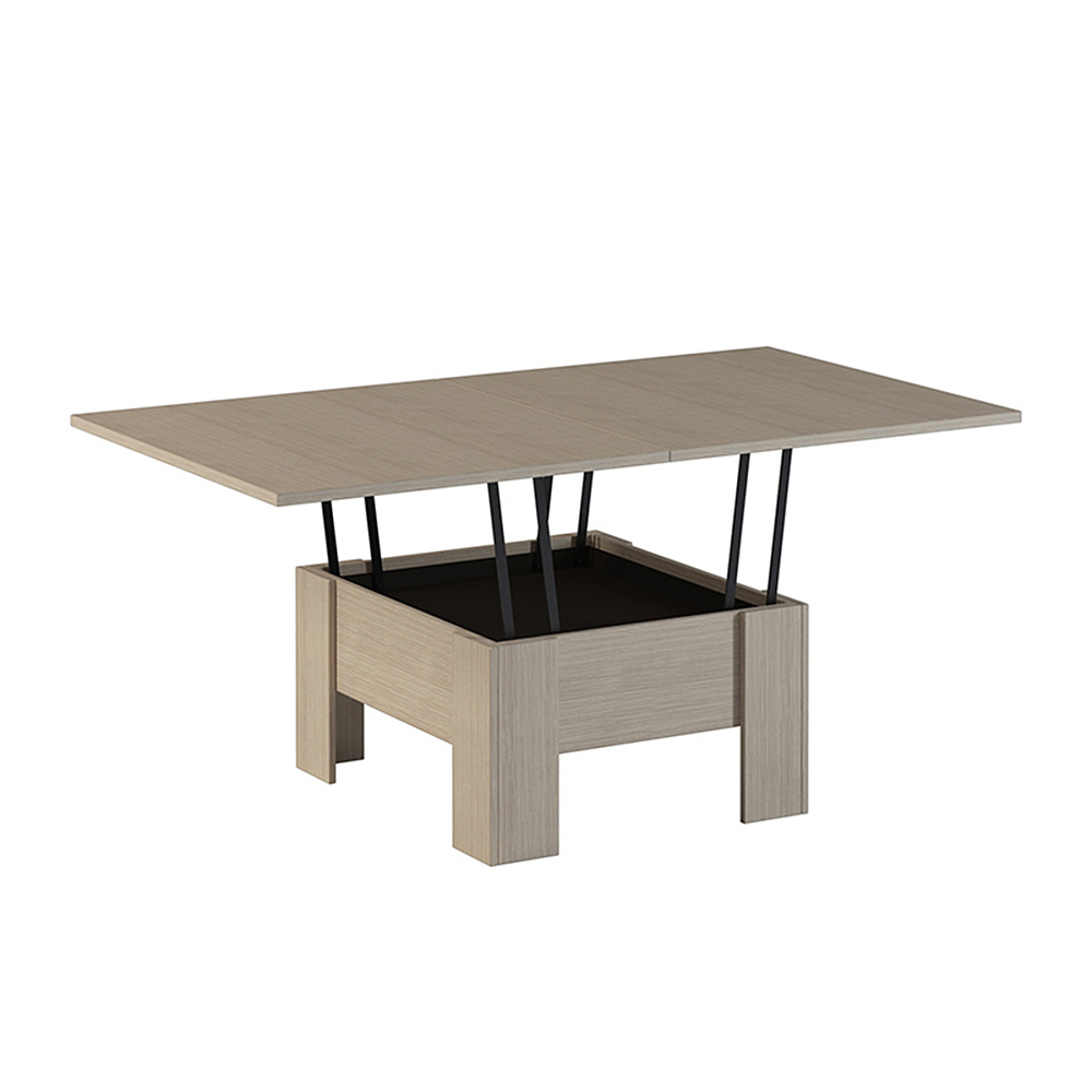 Возможность трансформации столешницы с помощью подъёмного механизма: позволяет увеличивать столешницу как в высоту, так и в длину в два раза, превращая тем самым журнальный стол в обеденный.