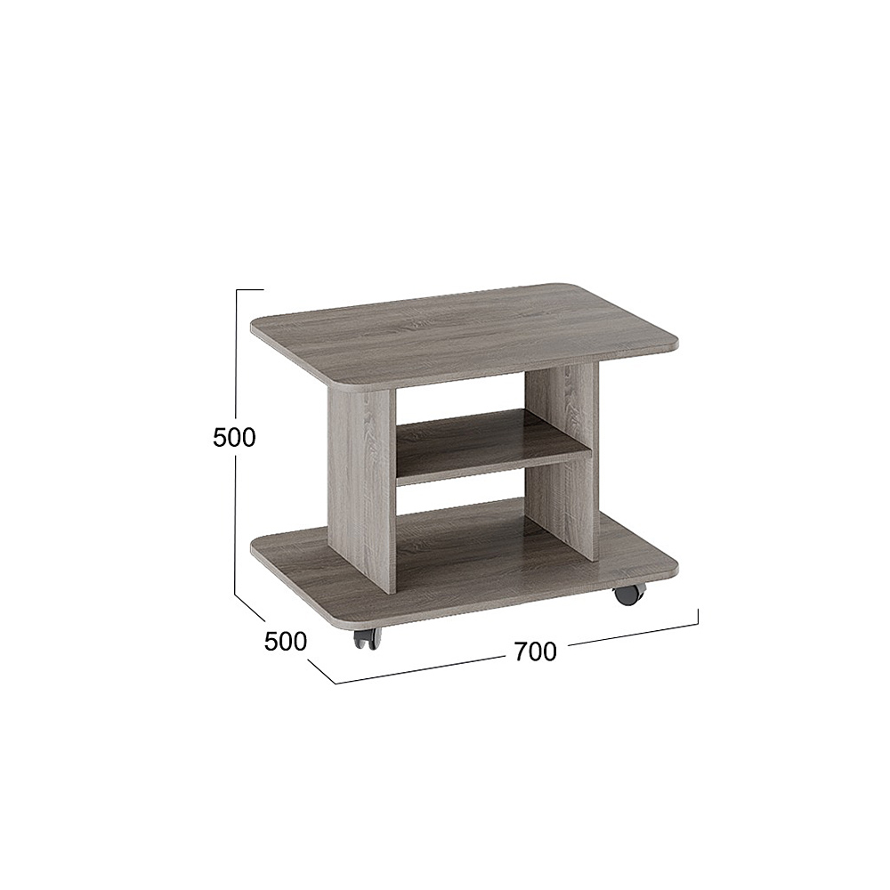 Преимуществами стола журнального тип 1 является его мобильность, многофункциональность, удобство и при этом небольшие габариты. Стол журнальный тип 1 оснащён роликовыми опорами, позволяющими при необходимости передвинуть его в любое место. Подвижные опоры позволяют использовать его как сервировочный столик и также это будет очень удобно при уборке помещения. Углы деталей нашей новинки скруглены и абсолютно безопасны, что особенно важно, если у Вас есть дети. У столика журнального тип 1 между опорами расположена полка. Она позволяет рационально использовать пространство под столешницей как место для хранения журналов, книг и многих других предметов.