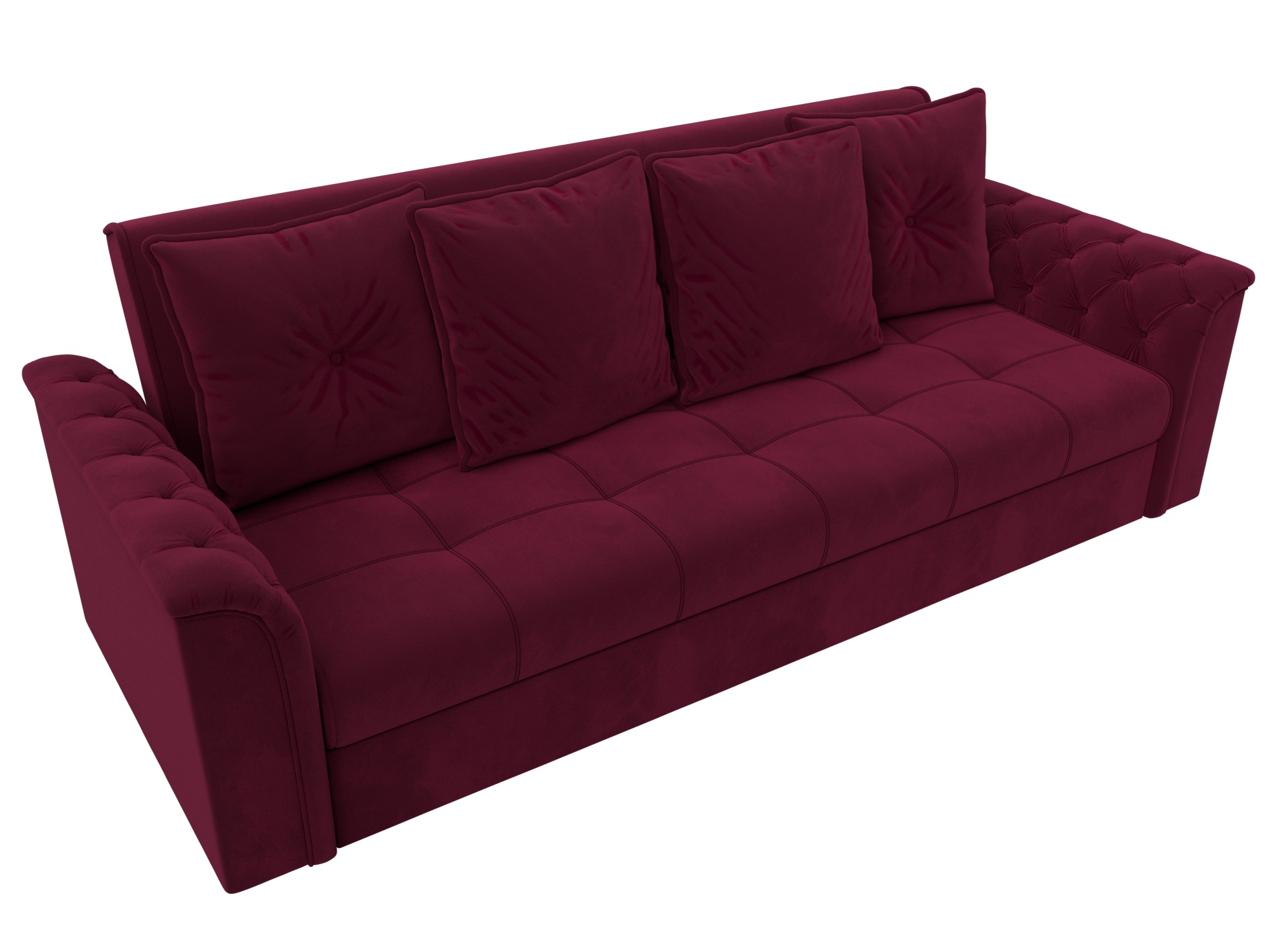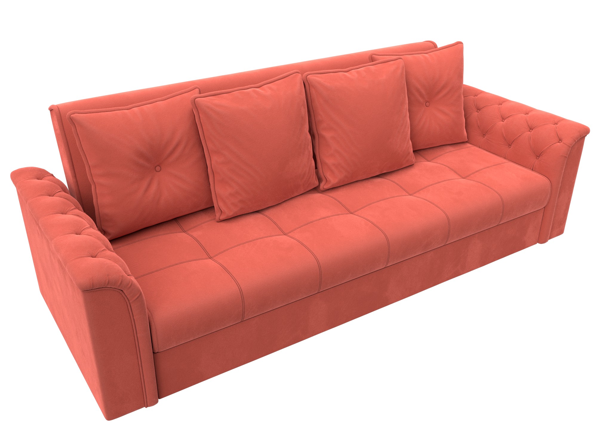 Сиеста – современный диван-книжка с интересным дизайном. Спинка модели дополнена 4 съемными подушками, мягкие полукруглые подлокотники обеспечат удобство и комфорт. Каретная стяжка на внутренней стороне подлокотников и сиденье делает диван элегантным и стильным. Конструкция функциональна, трансформируется в кровать. Диван книжка «Сиеста» станет выгодным приобретением для вашего дома и неотделимым элементом интерьера.