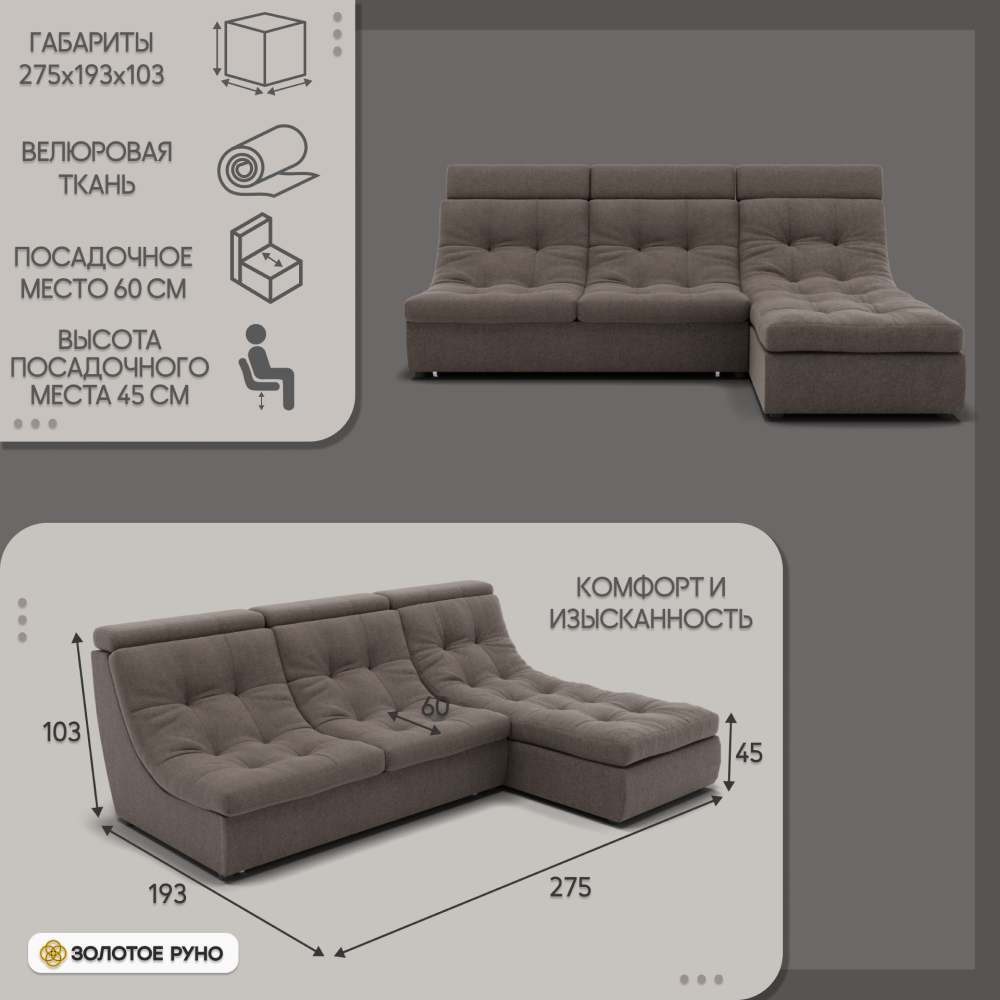 Отзывы о Столплит Угловой диван Монако-2 ППУ, велюр Коричнево-серый