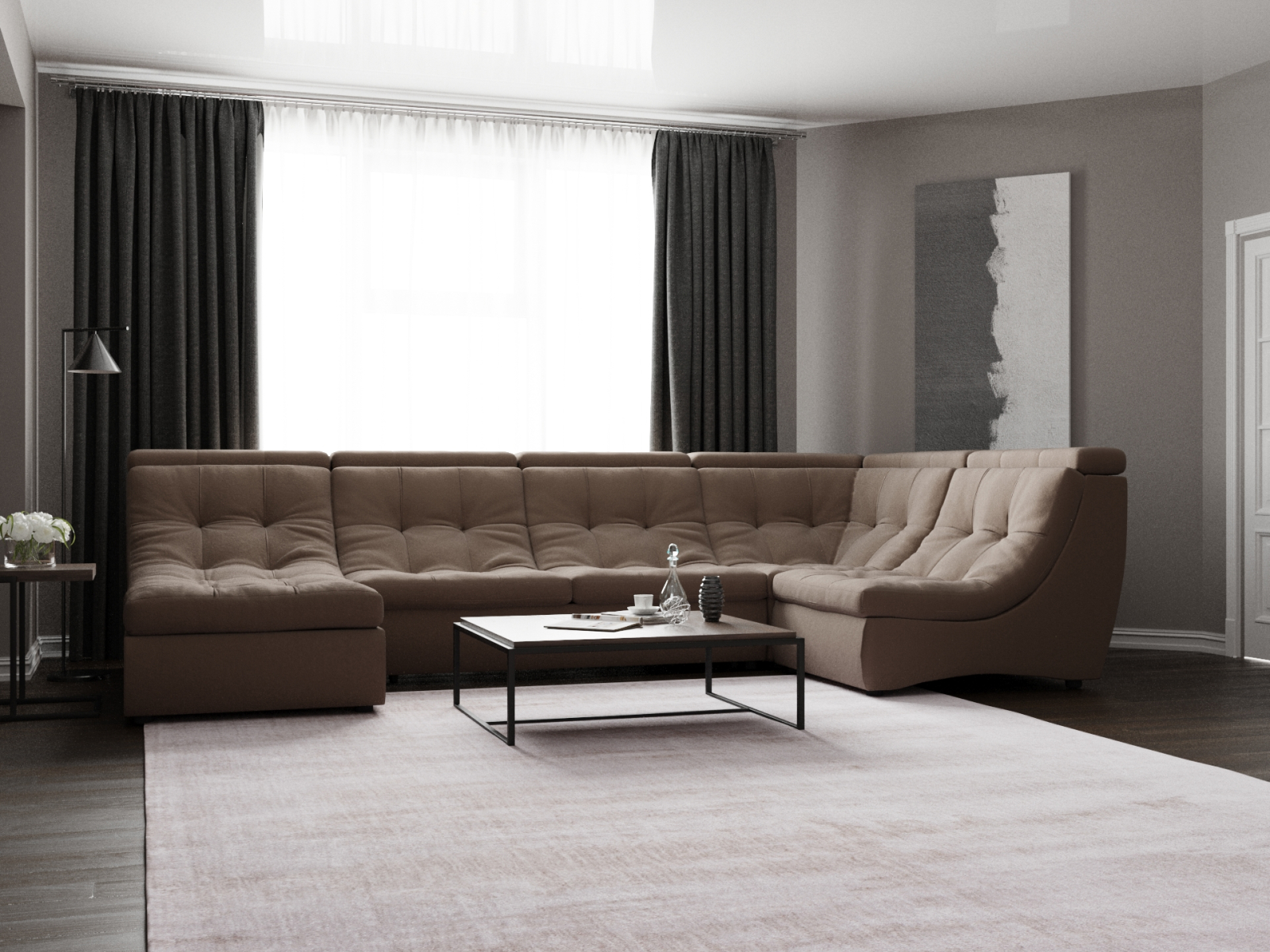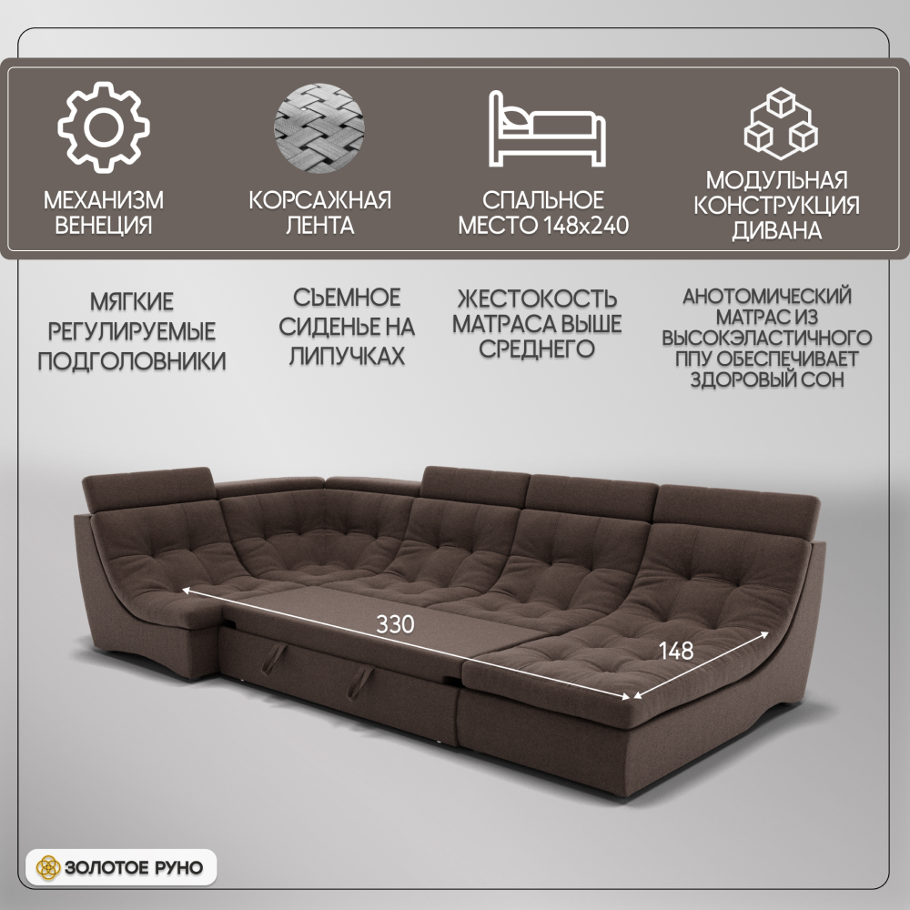 Отзывы о Столплит П-образный диван Монако-4 ППУ, велюр Коричневый
