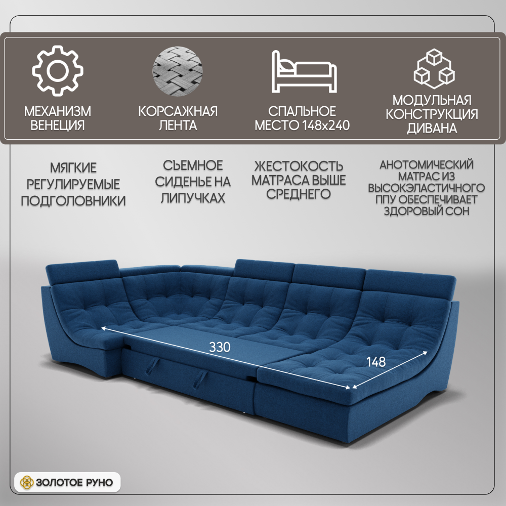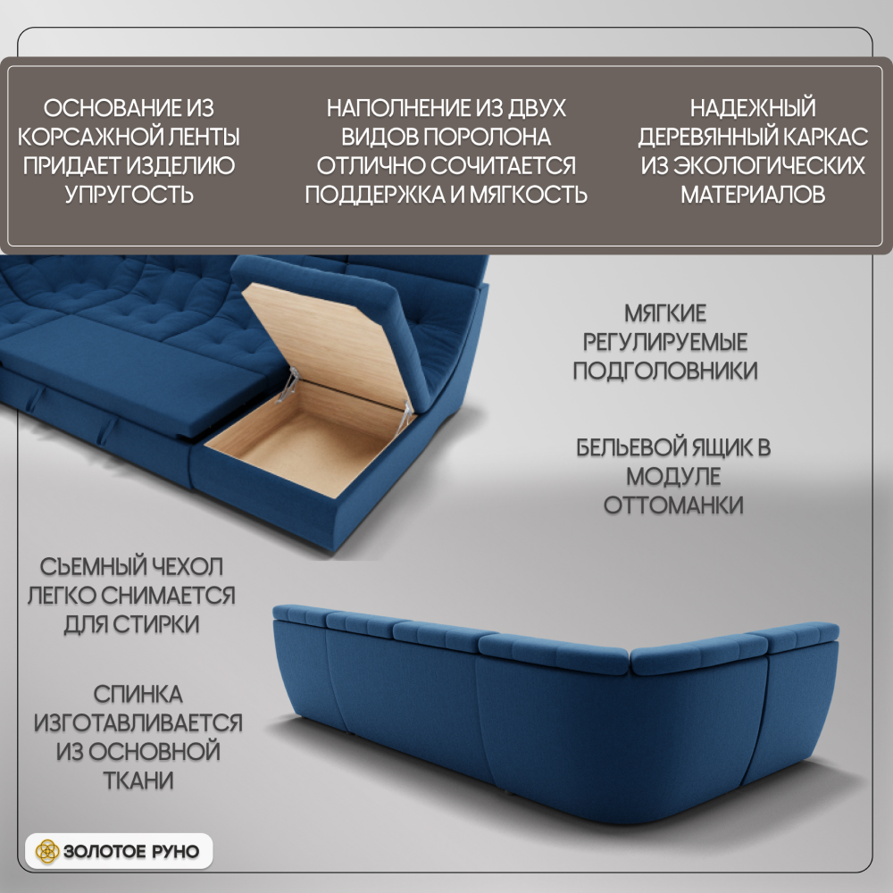 Отзывы о Столплит П-образный диван Монако-4 ППУ, велюр Синий