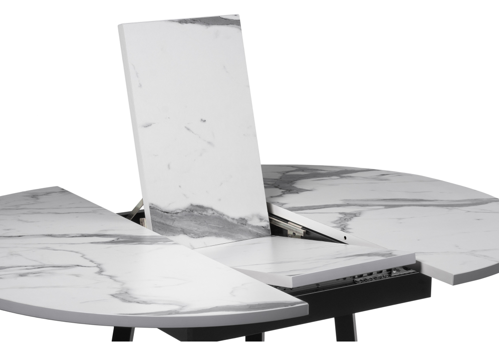 Толщина столешницы: 2,5 см. Материал каркаса - Металл; Материал ножек - Металл; Материал столешницы - ЛДСП; Цвет каркаса - Черный; Цвет ножек - Черный; Ширина - 100; Высота - 75; Длина стола в разложенном виде - 130; Длина - 100.
