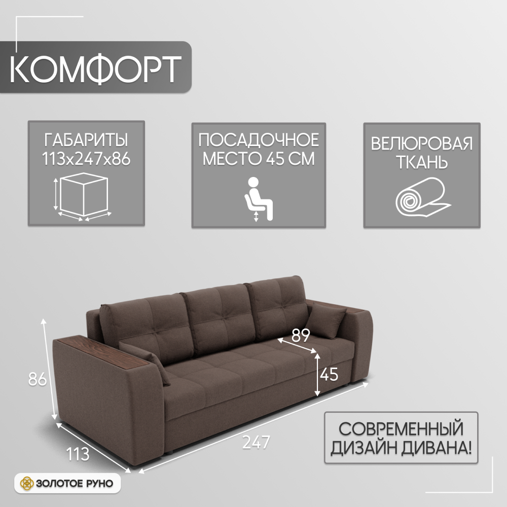 Отзывы о Столплит Прямой диван Сенатор-1 ППУ, велюр Коричневый